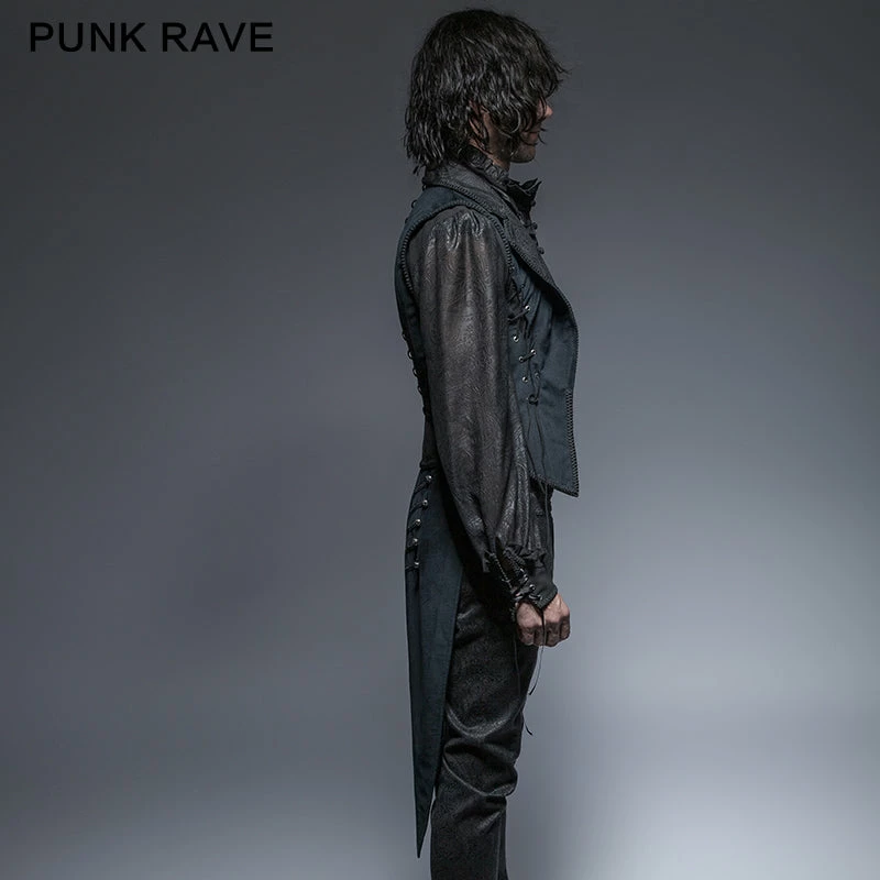 Punk Rave Store Blue Long Gorgeous Tuxedo 100% Polyester Gothic Coat