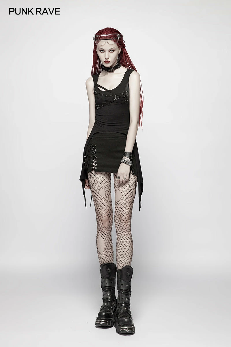 Punk Rave Store Daily Punk Cross Neck T-Shirt Irregular Vest