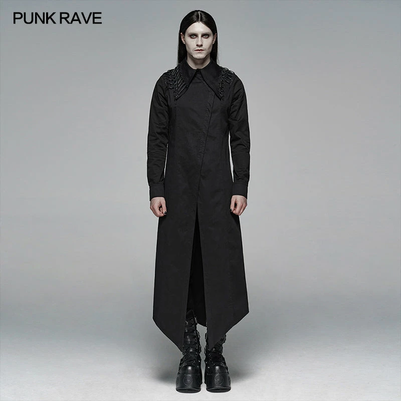 Punk Rave Store Dark Punk Micro-elastic Twill Long Shirt