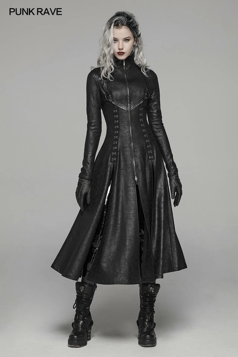 Punk Rave Store Dark Punk Slit Long Coat With Metal Double-head Zipper