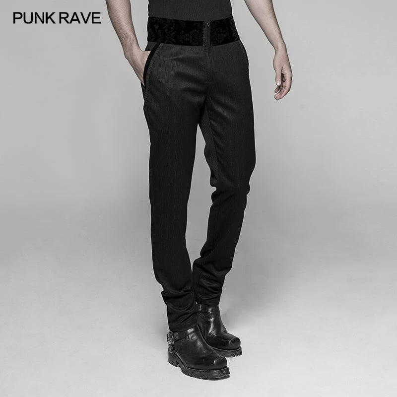 Punk Rave Store Dracula Gothic Pants Dark Stripes Trousers With Velvet Print Waistband