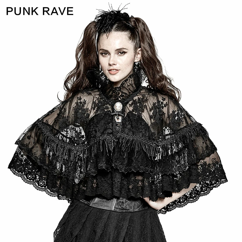 Punk Rave Store Flower Embroidered High Collar Lace Gothic Coat/lolita Cloak