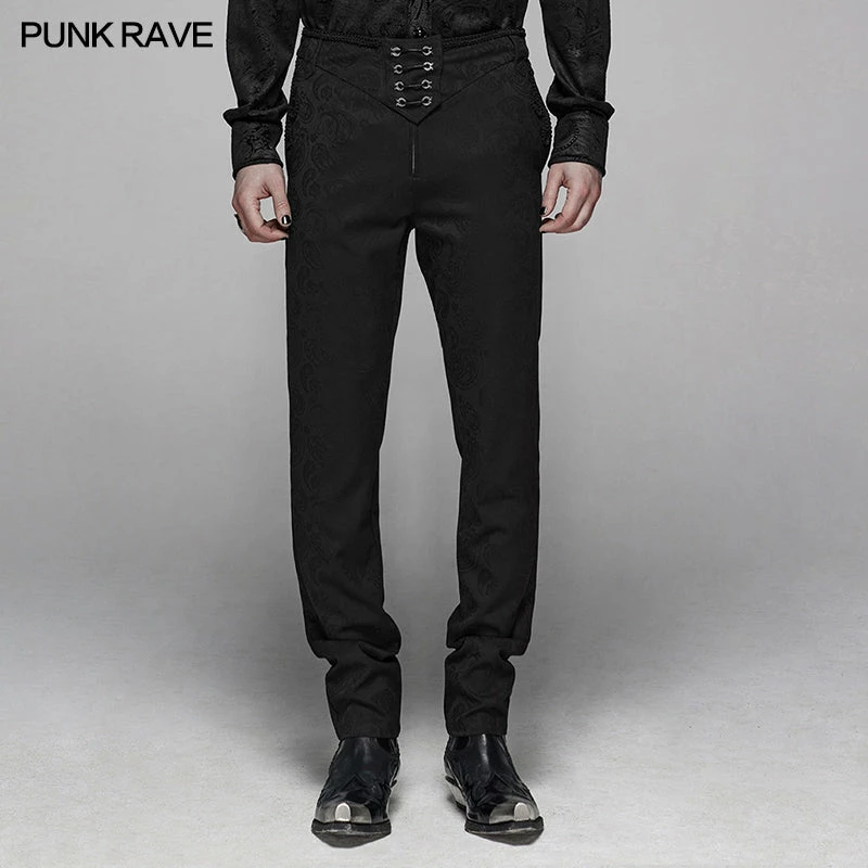 Punk Rave Store Gothic Floral Metal Swallow Black Suit Trousers