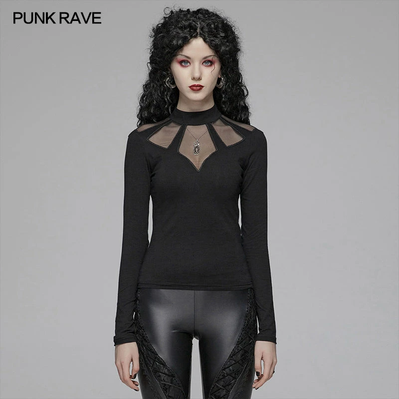 Punk Rave Store Gothic Hollow-out Long Sleeve T-shirt For Women