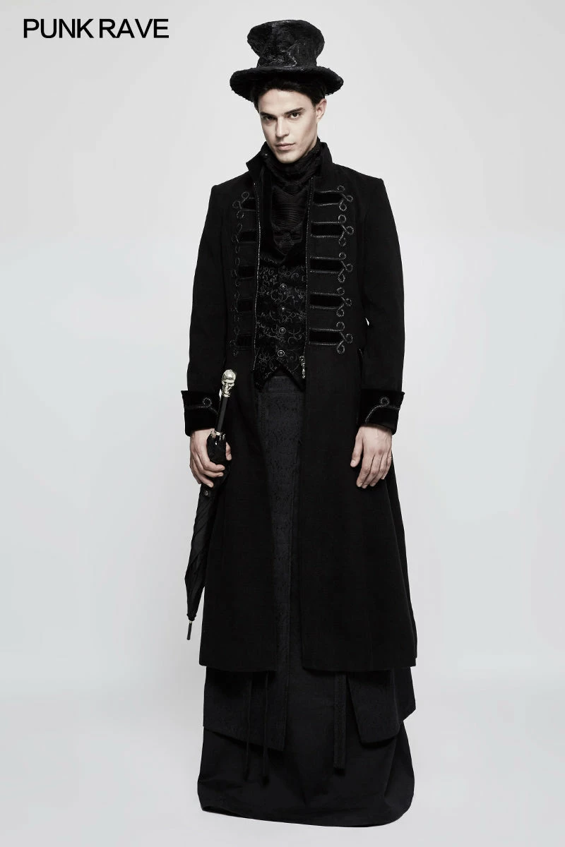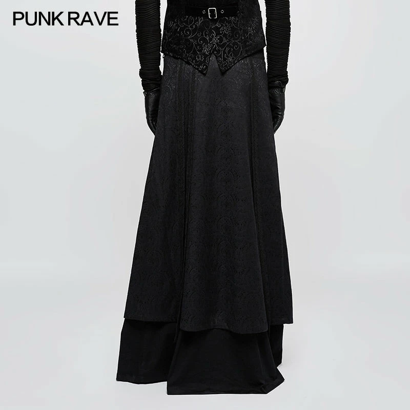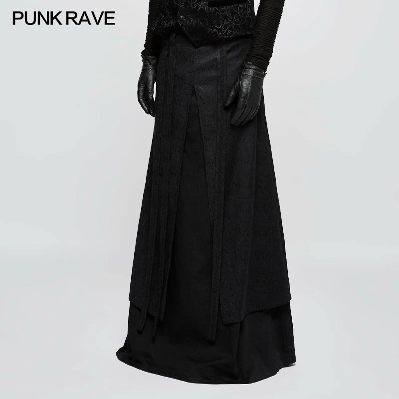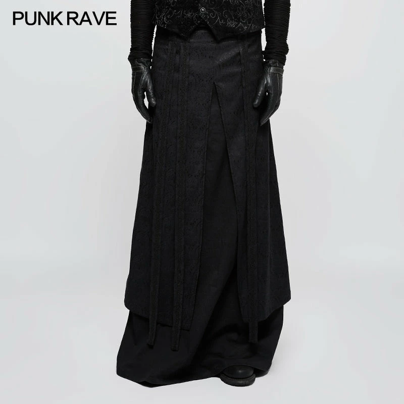 Punk Rave Store Gothic Mens Skirt Jacquard Fabric Half Long Black Gothic Skirt For Men