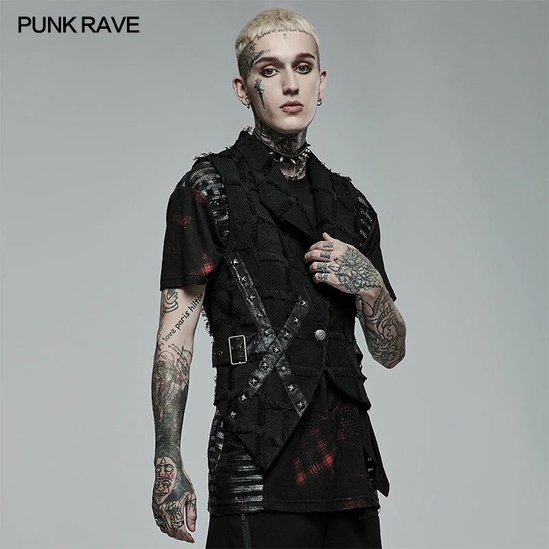 Punk Rave Store Womens & Mens Double Layers Irregular Dark Gothic Shirt With Black Hole Hooded