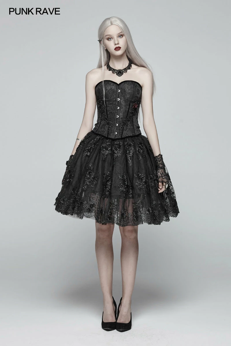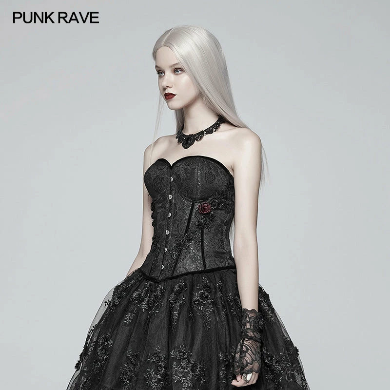 Punk Rave Store Gothic Womens Corset Gothic Sweetheart Neck Jacquard Corset