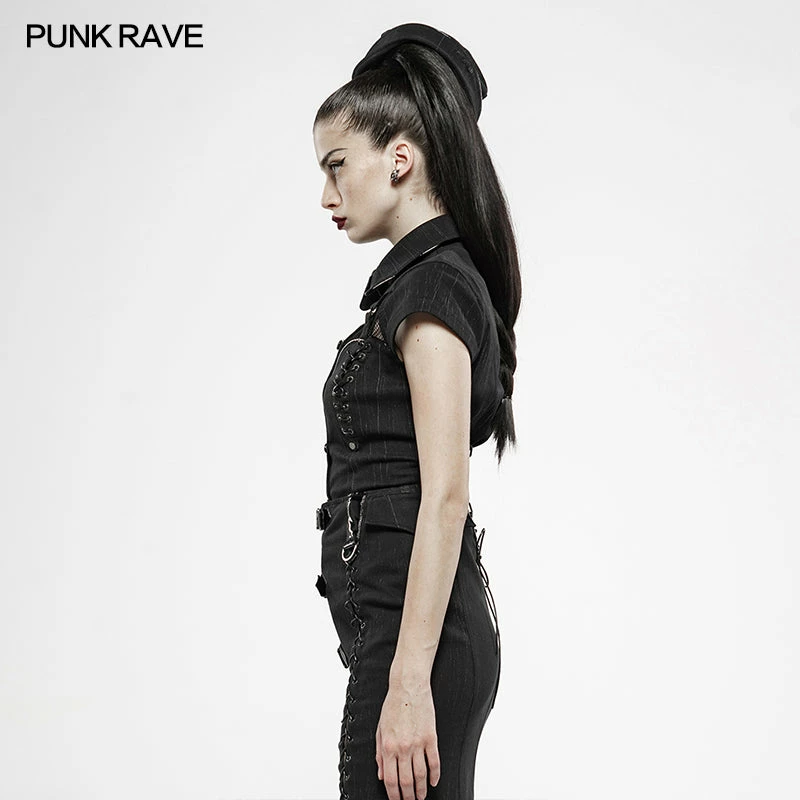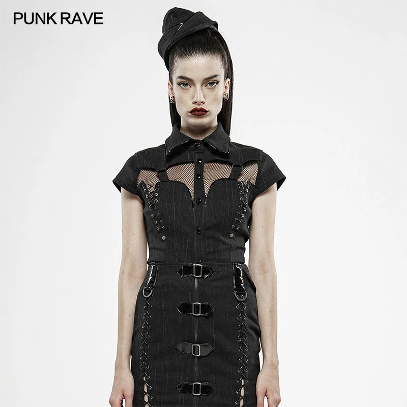 Punk Rave Store Womens & Mens Double Layers Irregular Dark Gothic Shirt With Black Hole Hooded