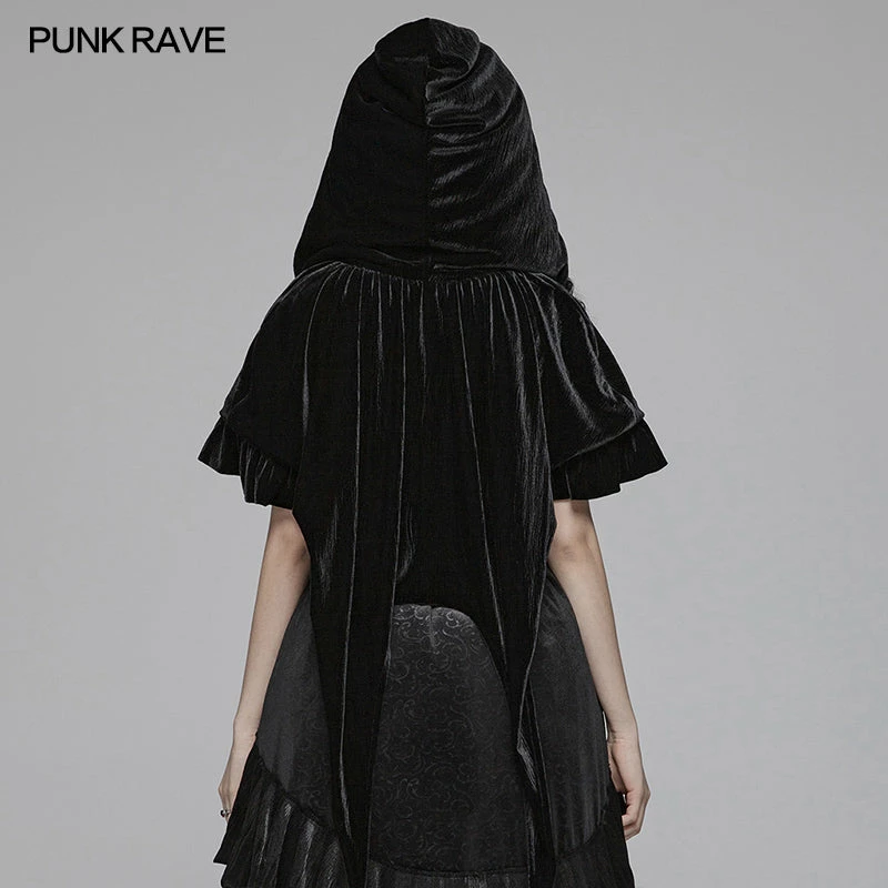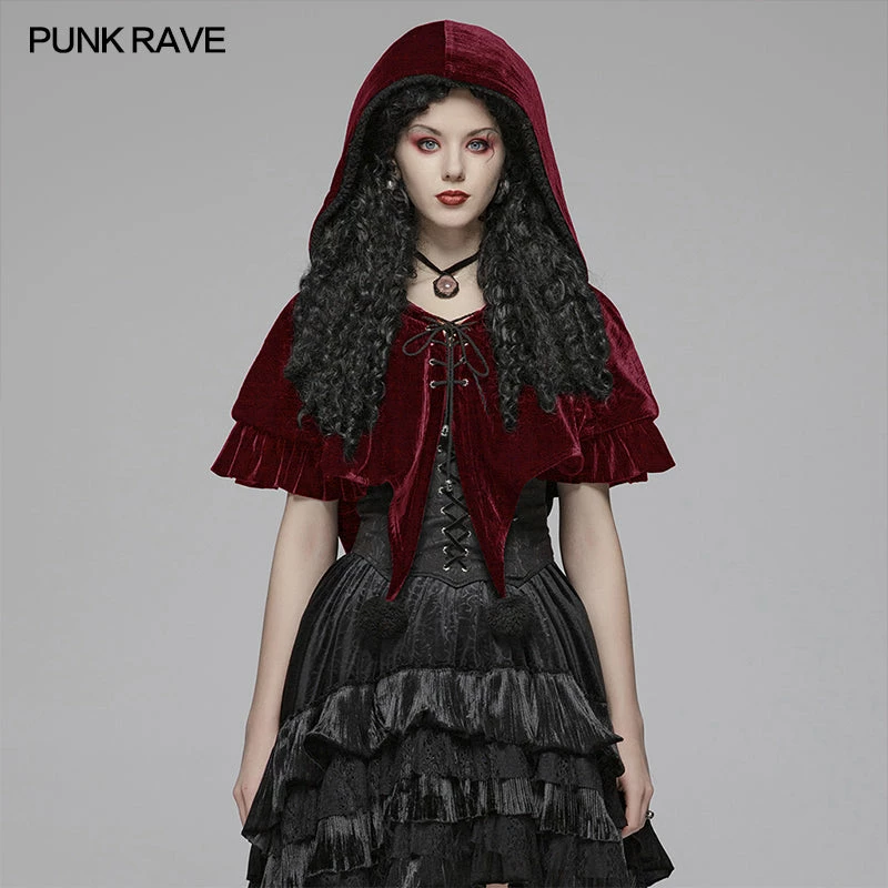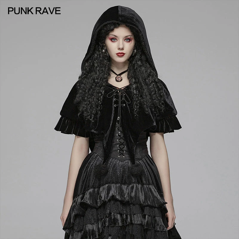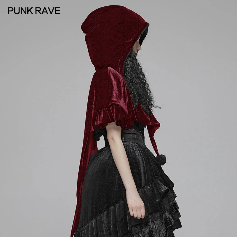 Punk Rave Store Lolita Velvet Short Hooded Loose Cloak With Cute Wooly Balls Accessories