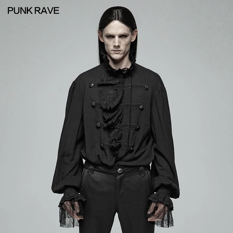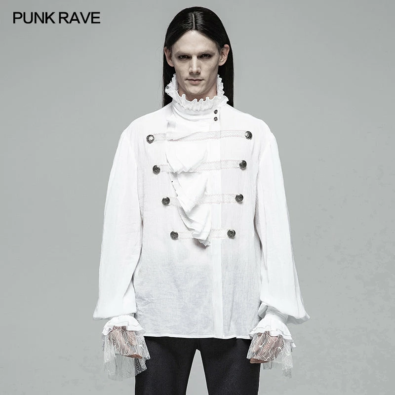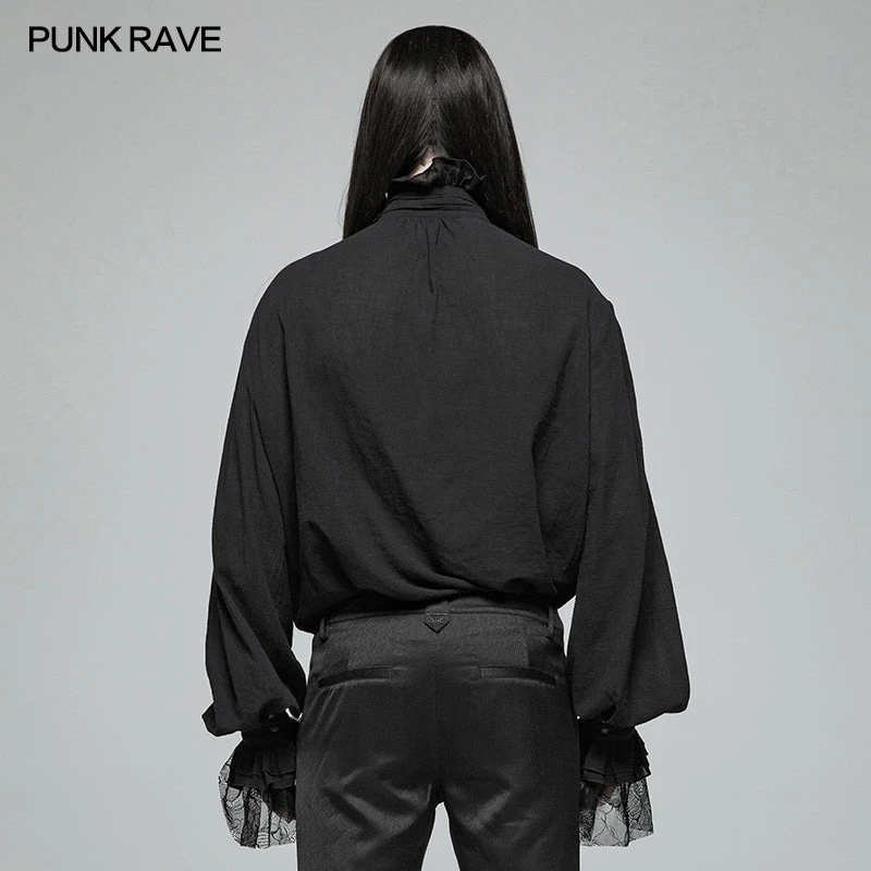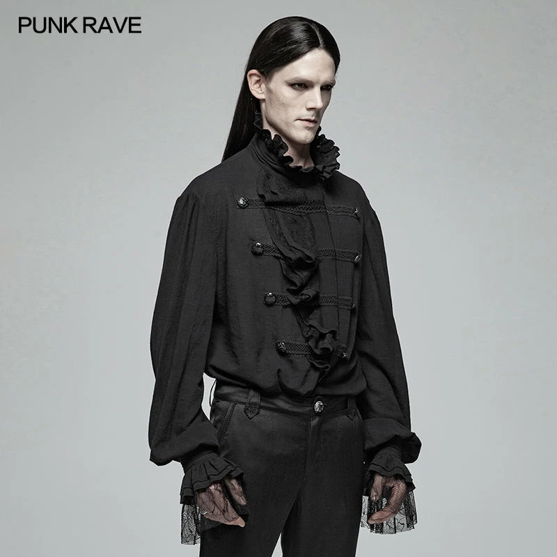 Punk Rave Store Men Gothic Partial Placket Lotus Leaf Loose Shirt With Standing Collar