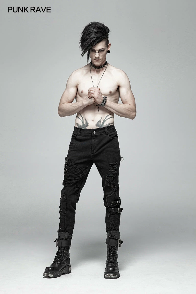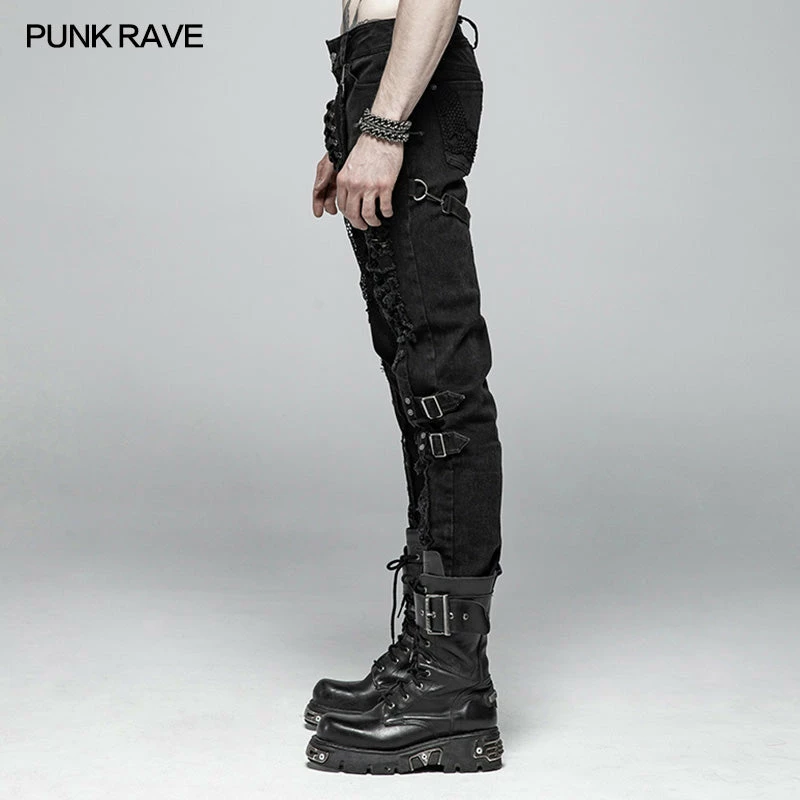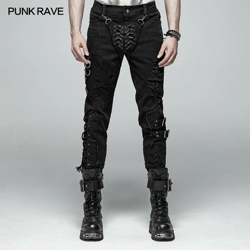 Punk Rave Store Men Punk Vintage Trousers With Detachable Personality Cover