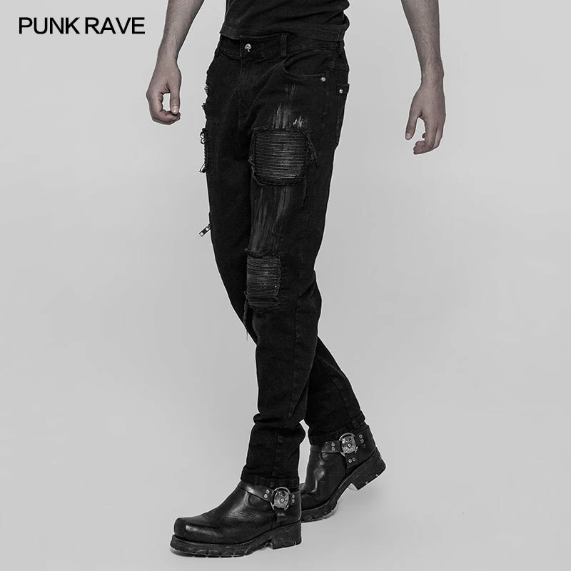 Punk Rave Store Men’s Punk Decadent Crack Personality Pants Hand-painted Trousers