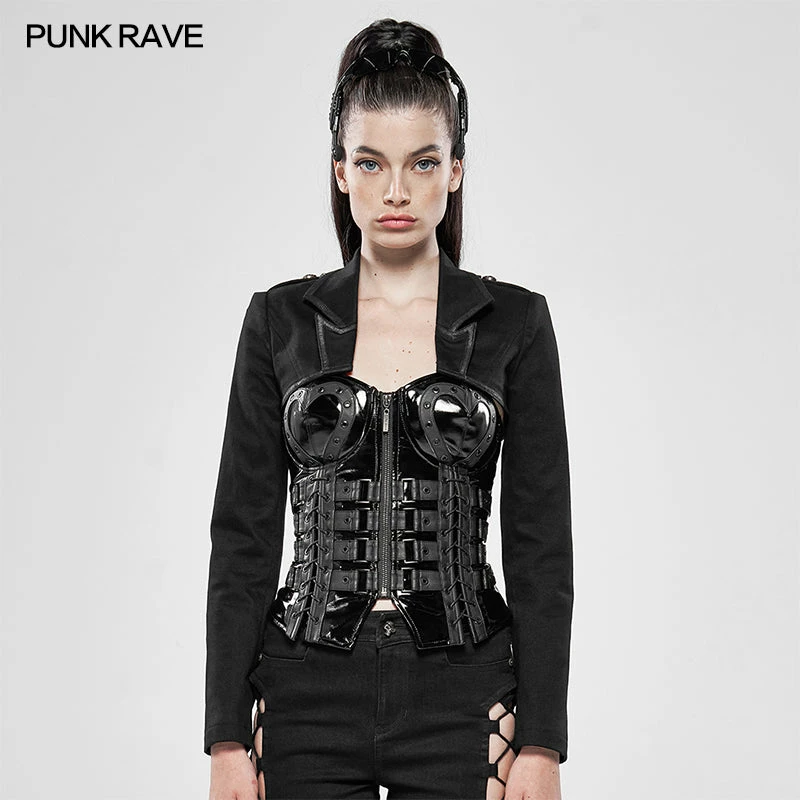 Punk Rave Store Womens & Mens Double Layers Irregular Dark Gothic Shirt With Black Hole Hooded