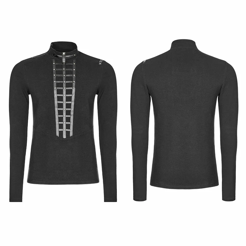 Punk Rave Store Punk Mens T Shirts Men’s Punk Front Pimp Rivets Slim Personality T-shirt