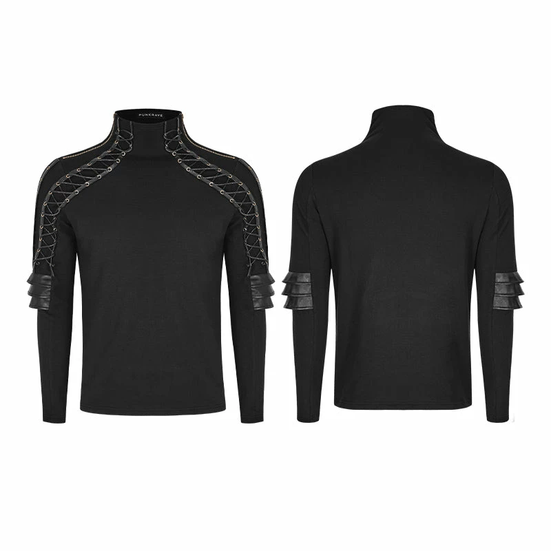 Punk Rave Store Punk Mens T Shirts Sweater Knitted Armor Stereo Punk T-shirts With Turtleneck Collar
