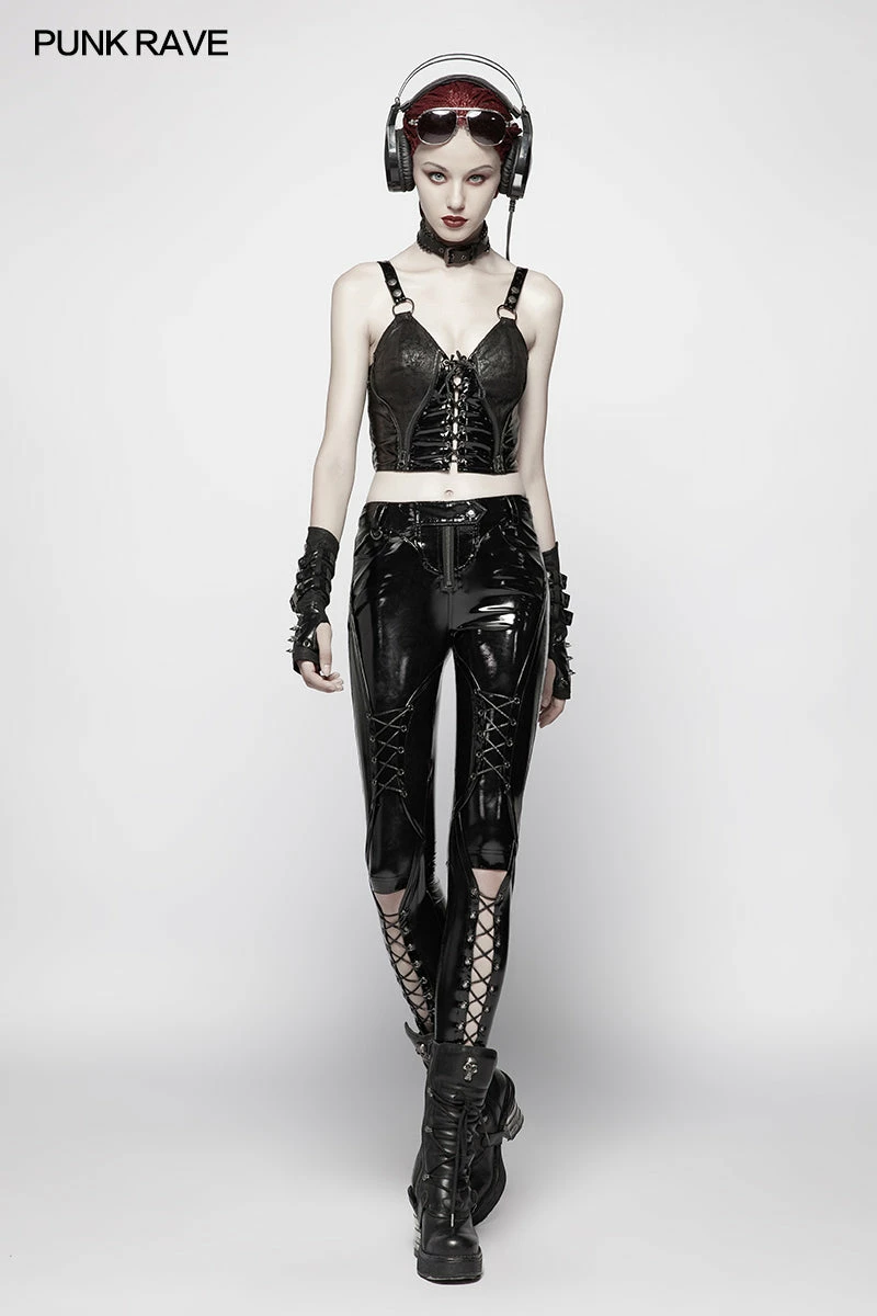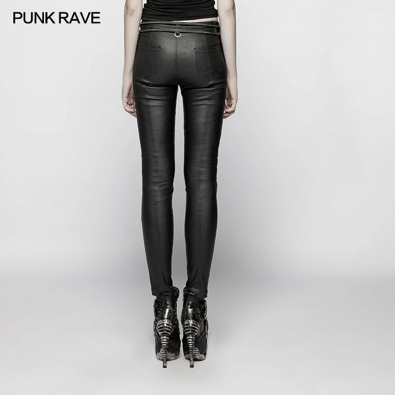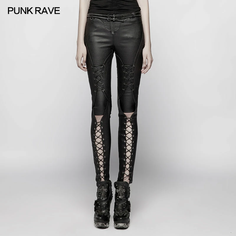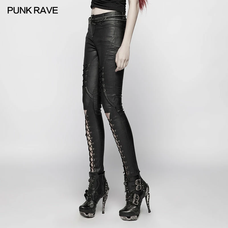 Punk Rave Store Punk Pressure Adhesive Faux Leather Woven Trousers