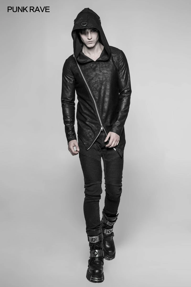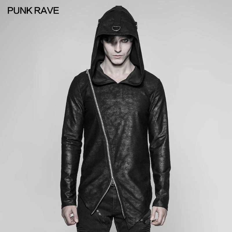 Punk Rave Store Punk Sweater & Hoodies Men’s Dark Punk Personality Pullover Hoodie Beveled Zipper Hooded Knitting Sweater