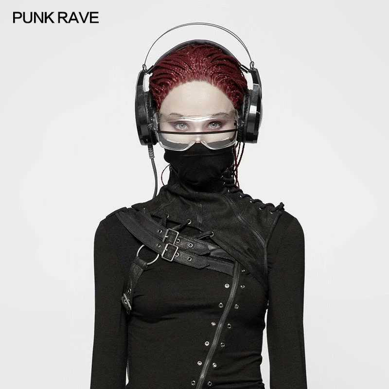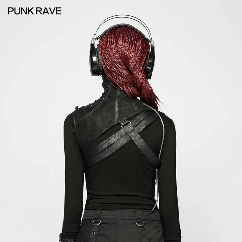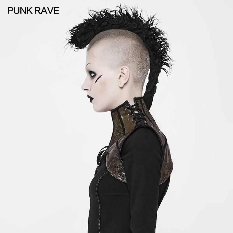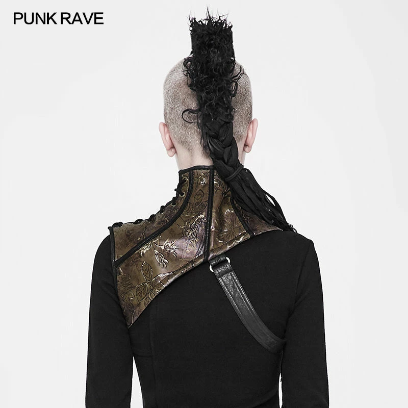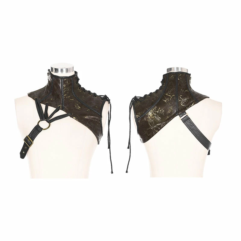 Punk Rave Store Steampunk Embossed Leather Collar And Shoulder Harness Accessories For Women Shoulder Armor