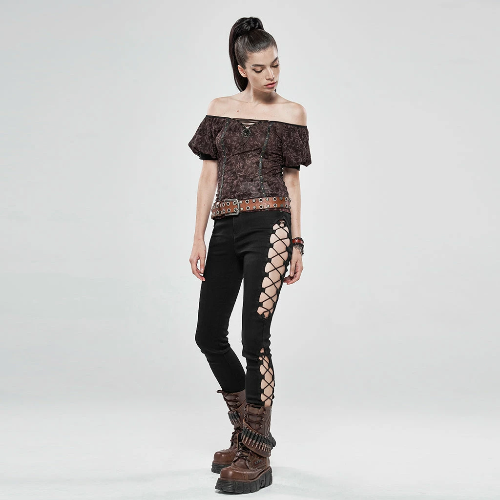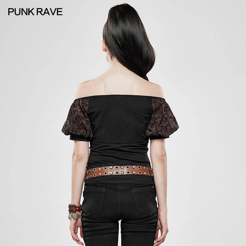 Punkravestore Gothic Spider Web Printting Perspective T-shirt
