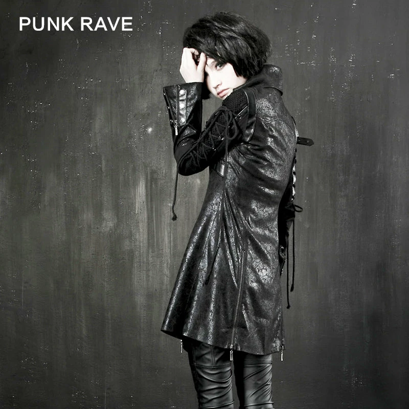 Punk Rave Store Womens & Mens Double Layers Irregular Dark Gothic Shirt With Black Hole Hooded