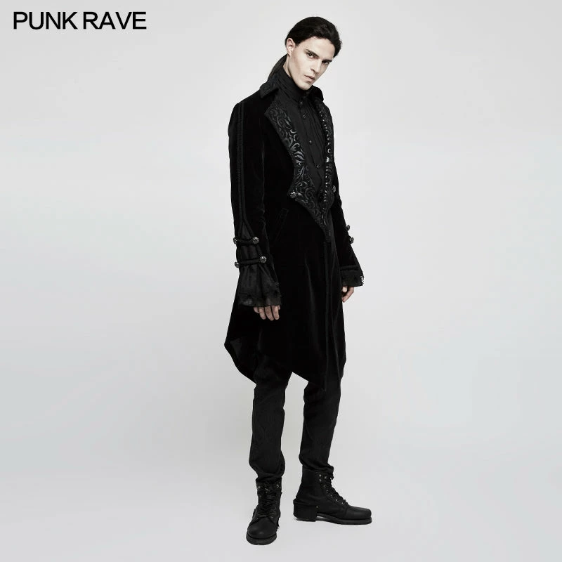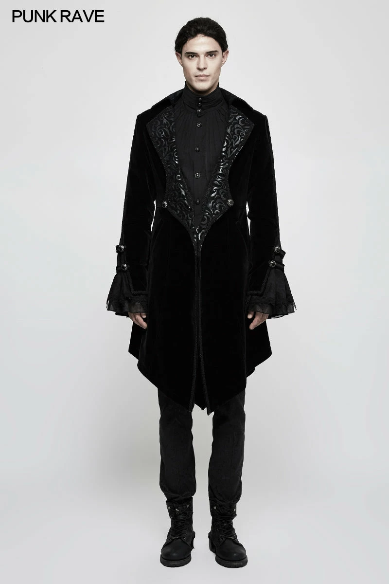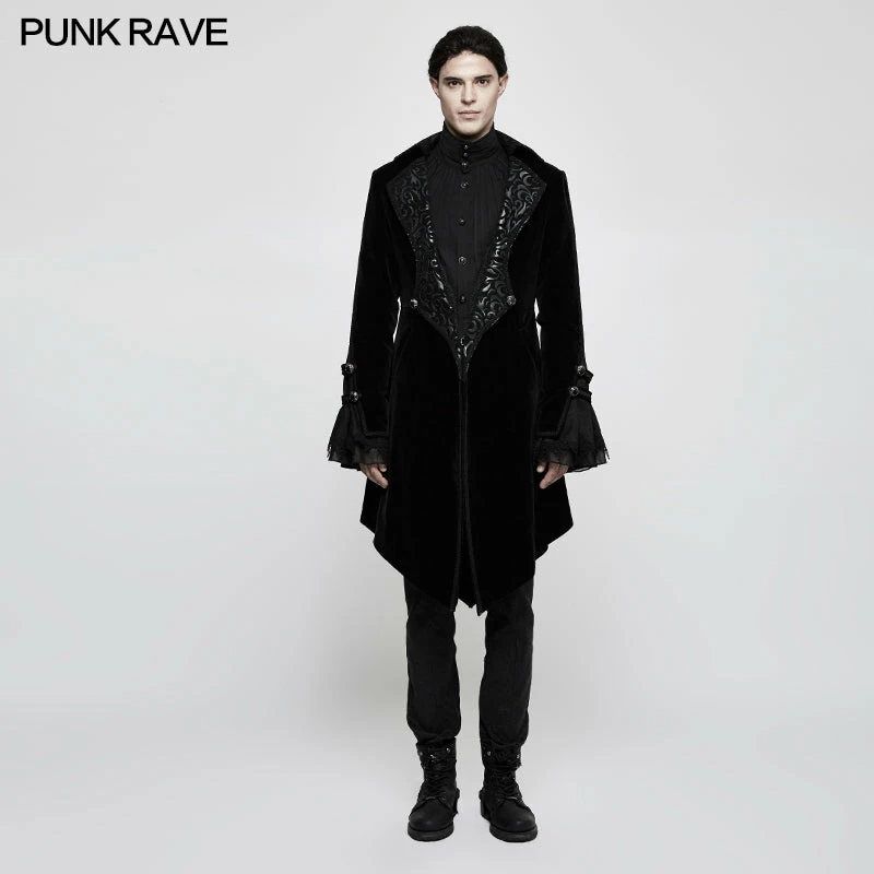 Punk Rave Store Suede Embossed Velvet Gothic Coat Gorgeous Medium Long Style