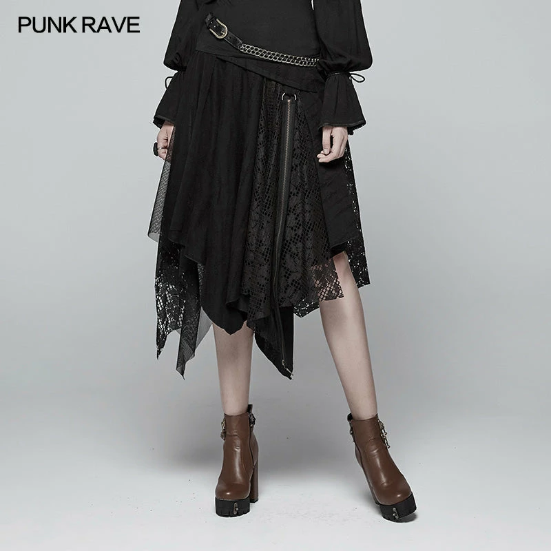 Punk Rave Store Vintage Steam Punk Asymmetric Lace Half Skirt Gothic Steampunk
