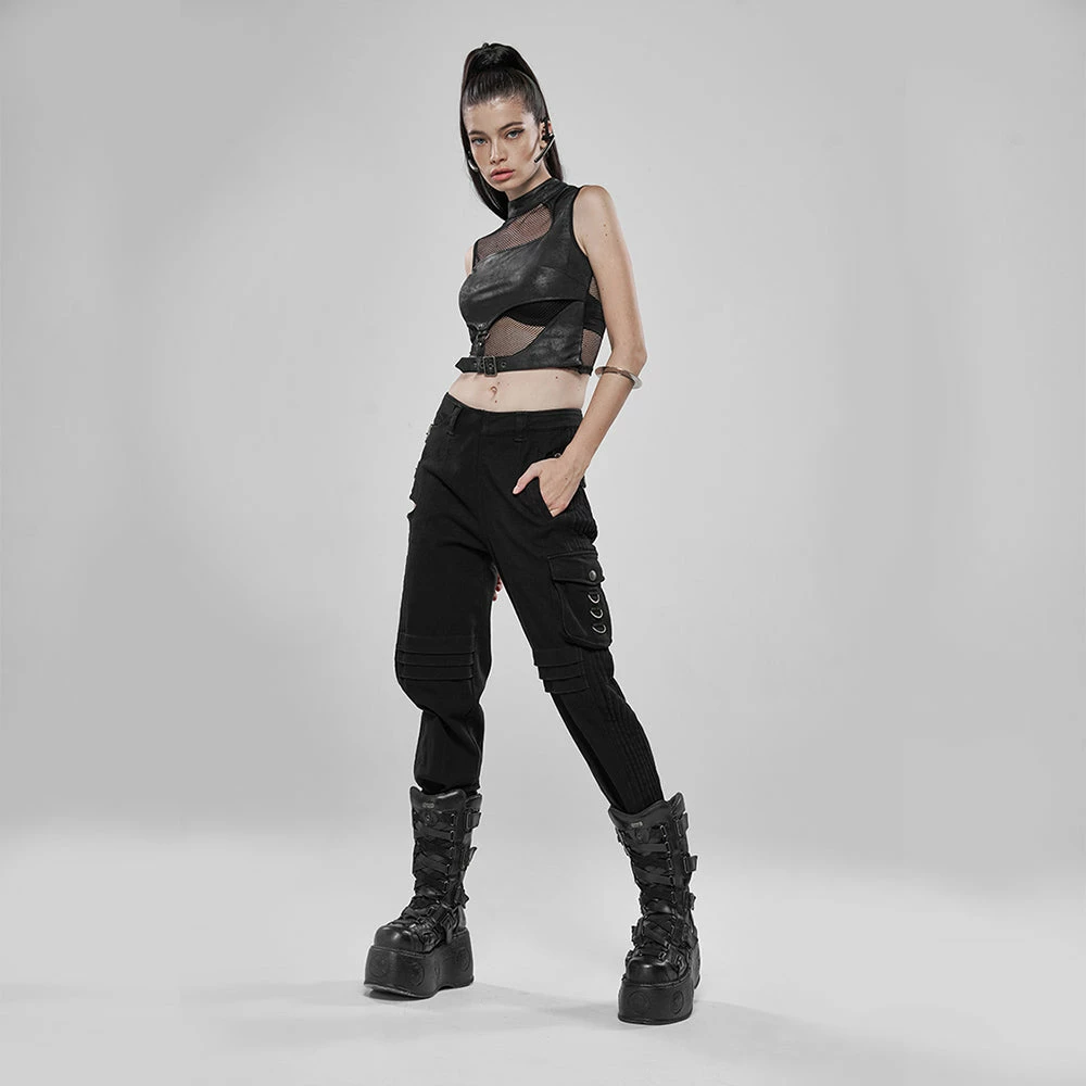 Punkravestore Gothic Spider Web Printting Perspective T-shirt