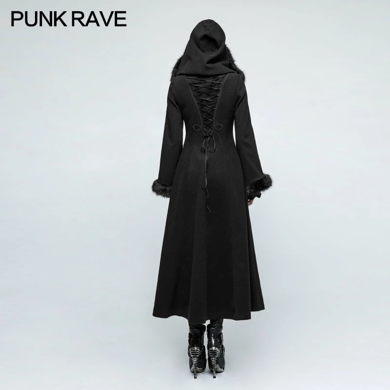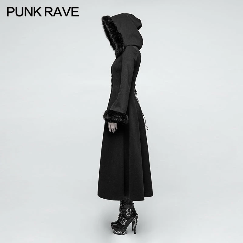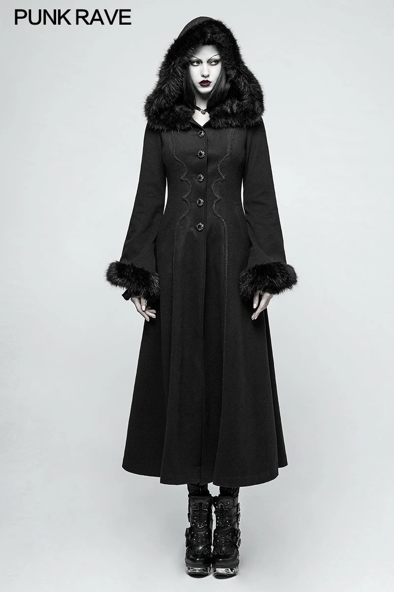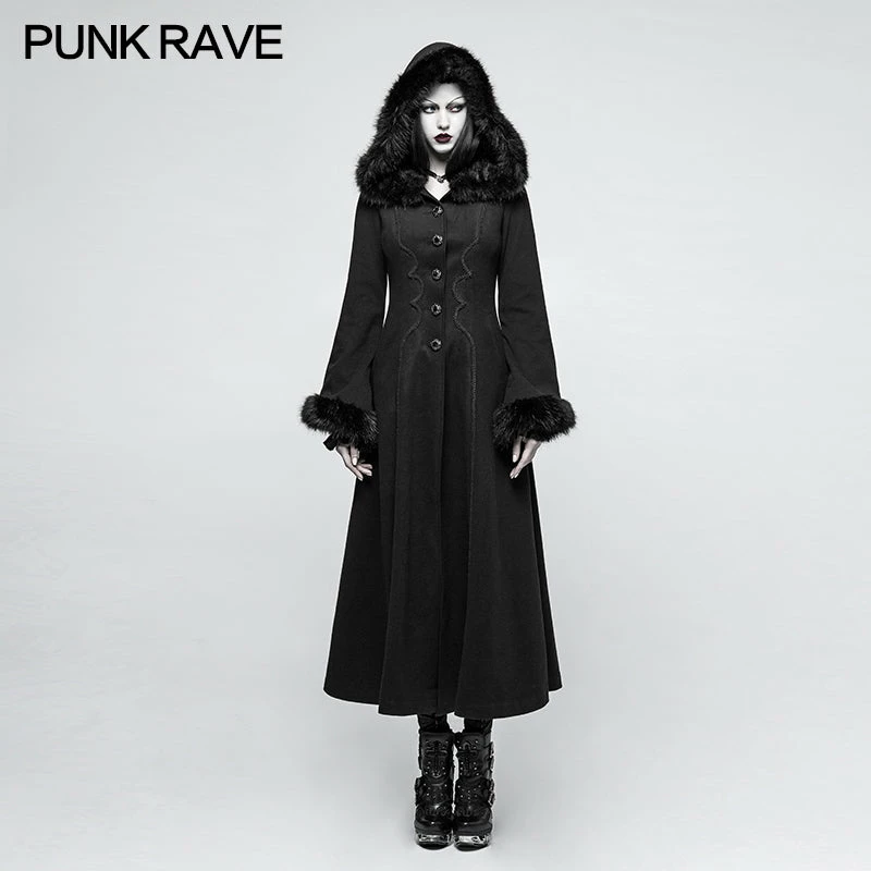 Punk Rave Store Women Disc Flowers Worsted Long Gothic Coat With Hooded