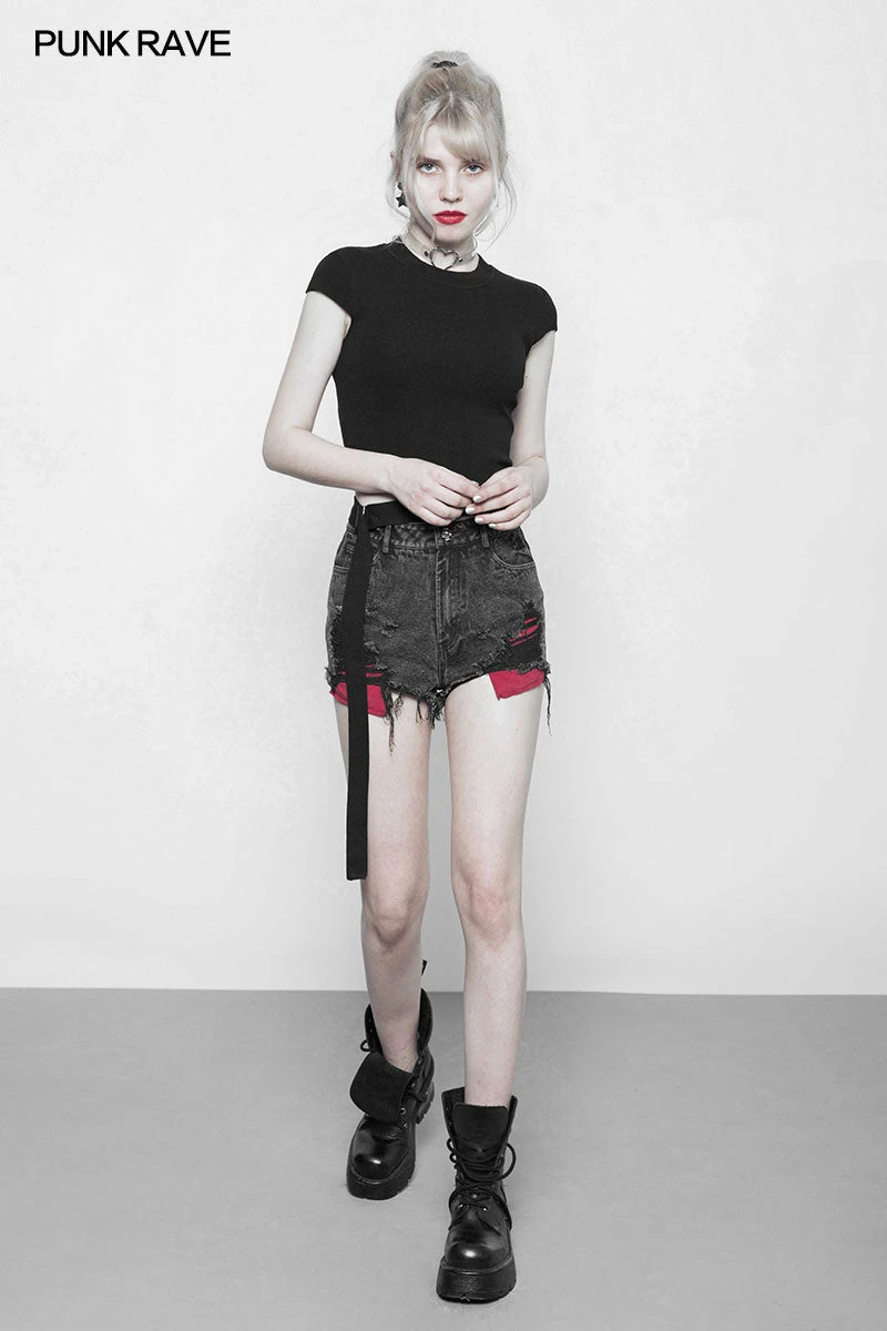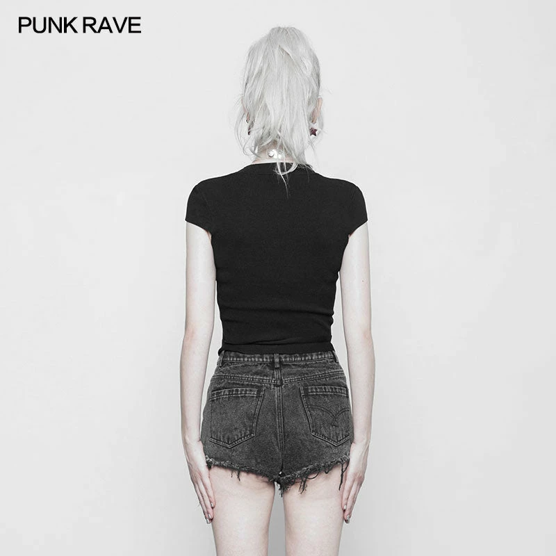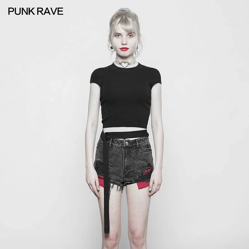 Punk Rave Store Women’s Round Collar Punk Sweater Top With Personality Belt Punk Sweater & Hoodies