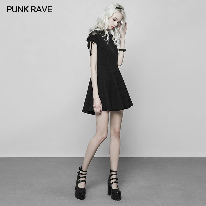Punk Rave Store Women’s Sexy Gauze Stitching Chiffon Dress With Bow-Knot Detail