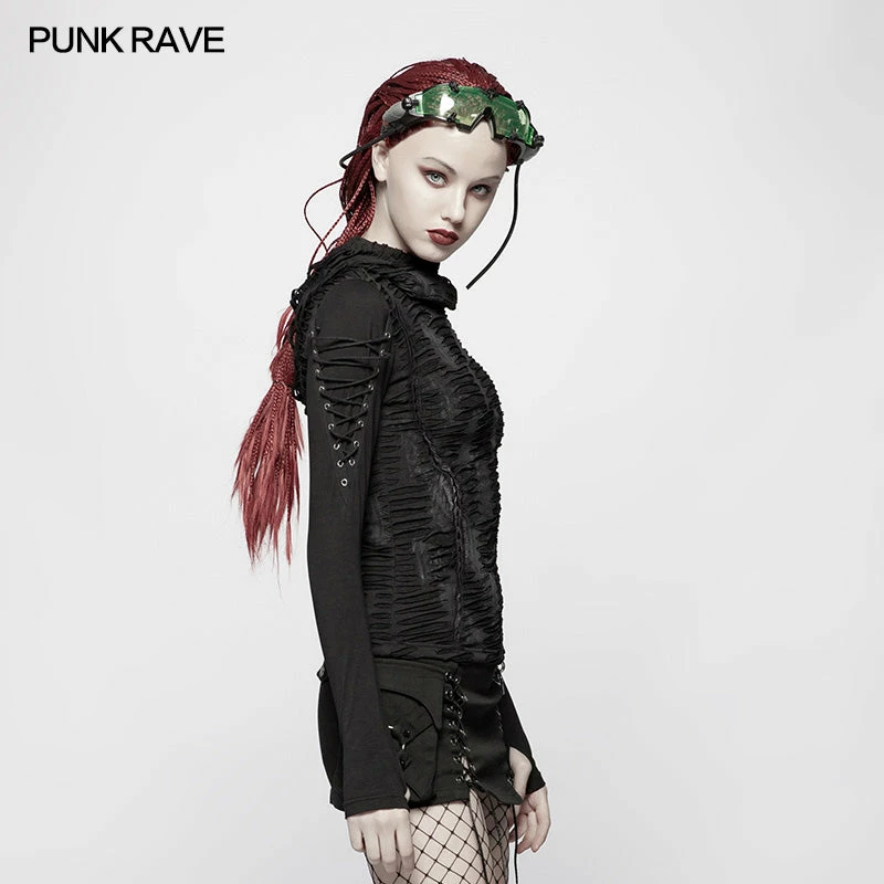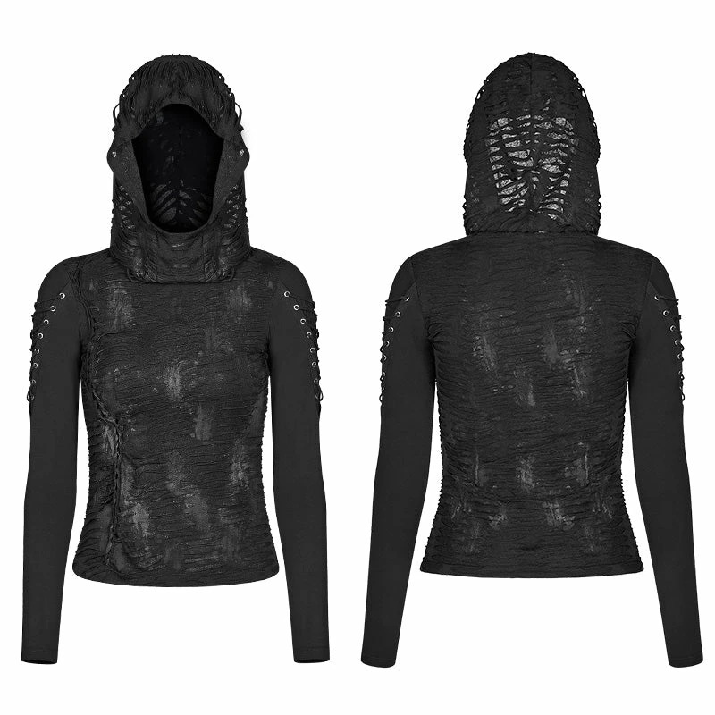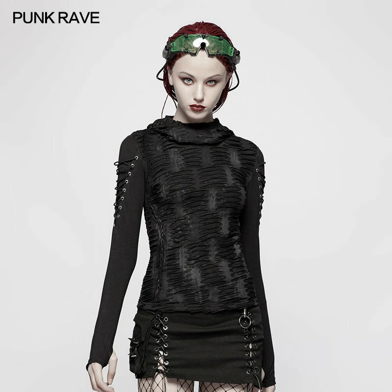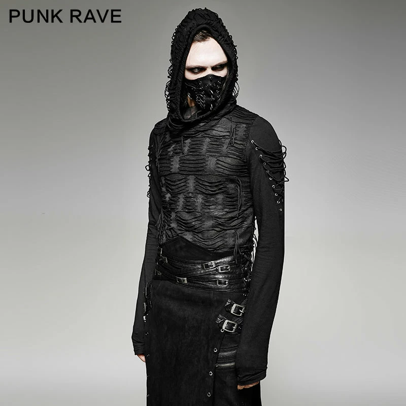 Punk Rave Store Womens & Mens Double Layers Irregular Dark Gothic Shirt With Black Hole Hooded