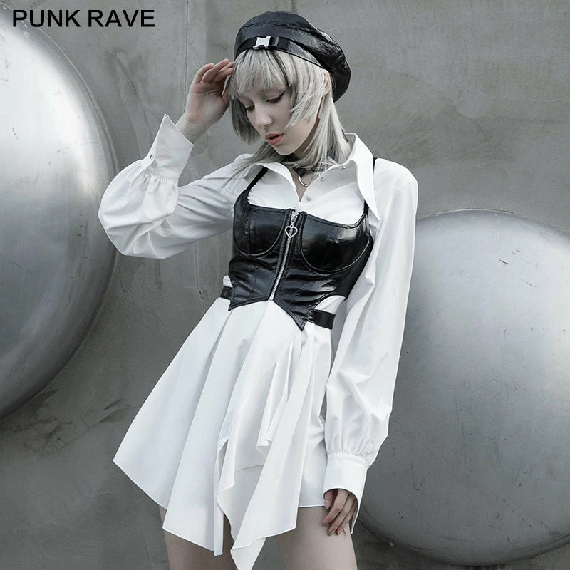 Design selling points: 1.Gothic style with long, thin shirt collar 2. The swallow tail shape cuff 3.Asymmetric wave structure at front left side , and irregular arc between both sides and middle of the skirt, Clever and rich sense of structure 4.Good fit version, dress up the body perfectly. Fabric selling points: White color style is used the Micro – elastic polyester woven shirt material, it’s soft and skin-friendly. 2.Black-green plaid style is used the Cotton blended woven fabric,which has the Cotton microwool handfeel, llightsome, hygroscopic, breathable.