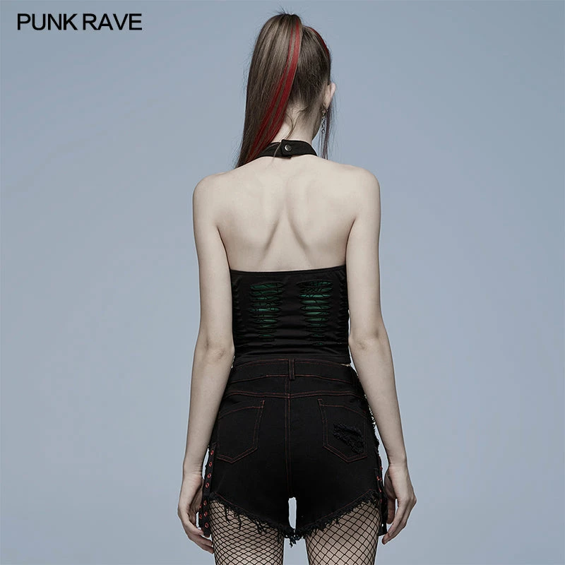 - The elastic knitted fabric is combined with spider pattern mesh. 2. The front and back hollowed out design adds sexinity.