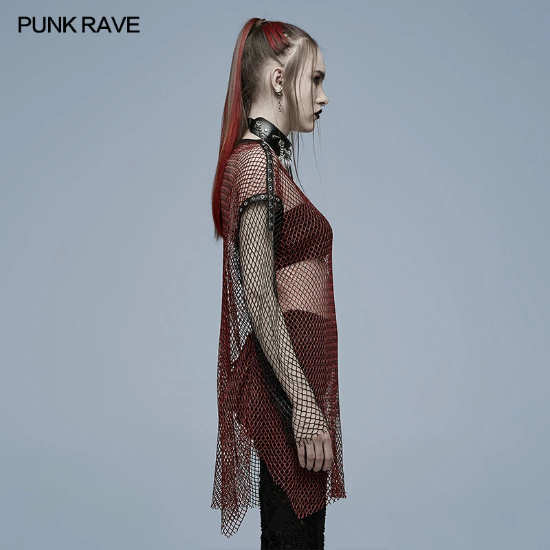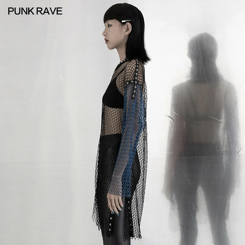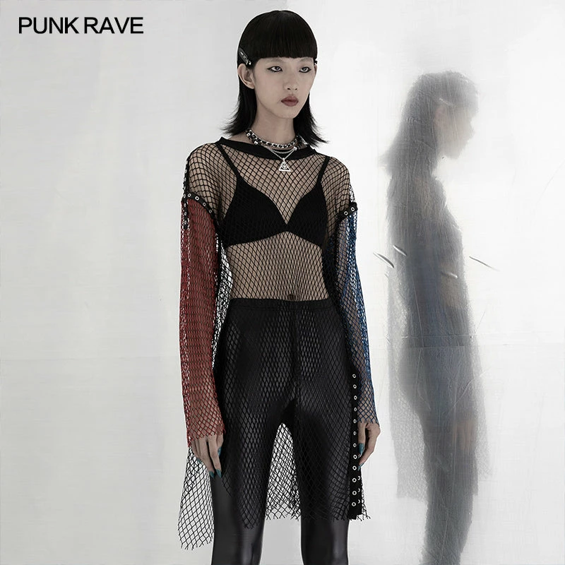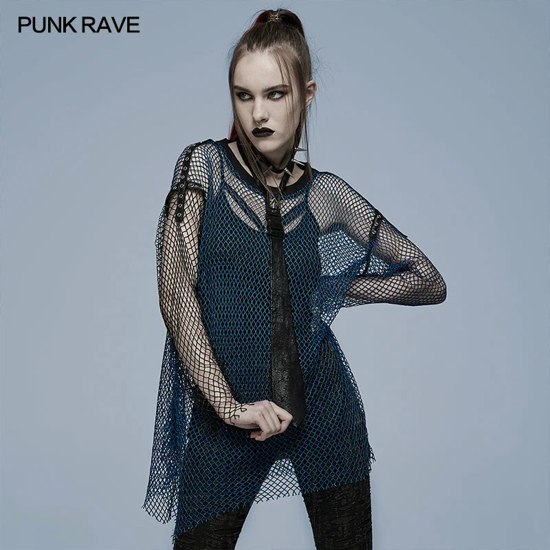 Punk Rave Store Womens & Mens Double Layers Irregular Dark Gothic Shirt With Black Hole Hooded