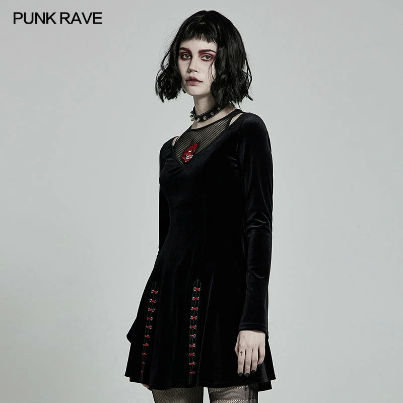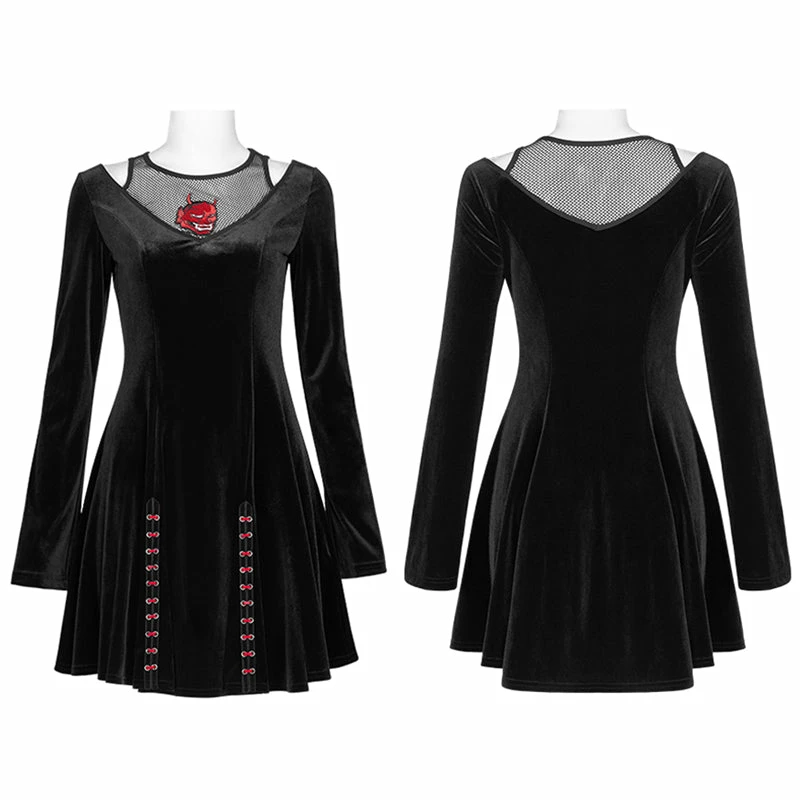 - The hem is decorated with a ribbon eyelet and a red velvet ribbon.