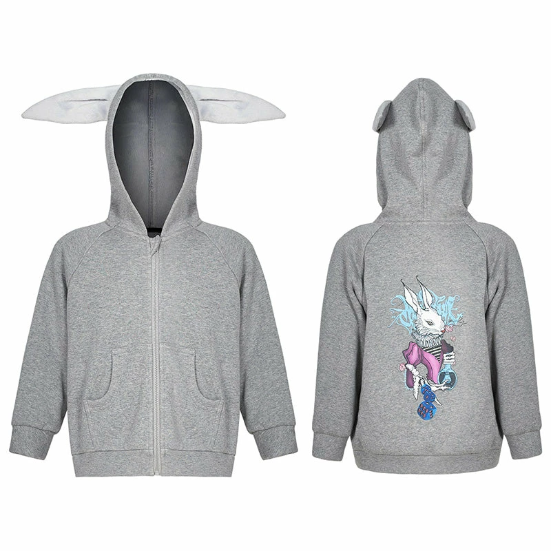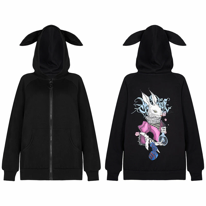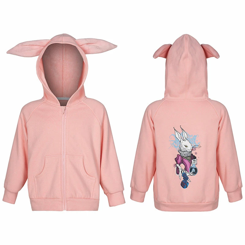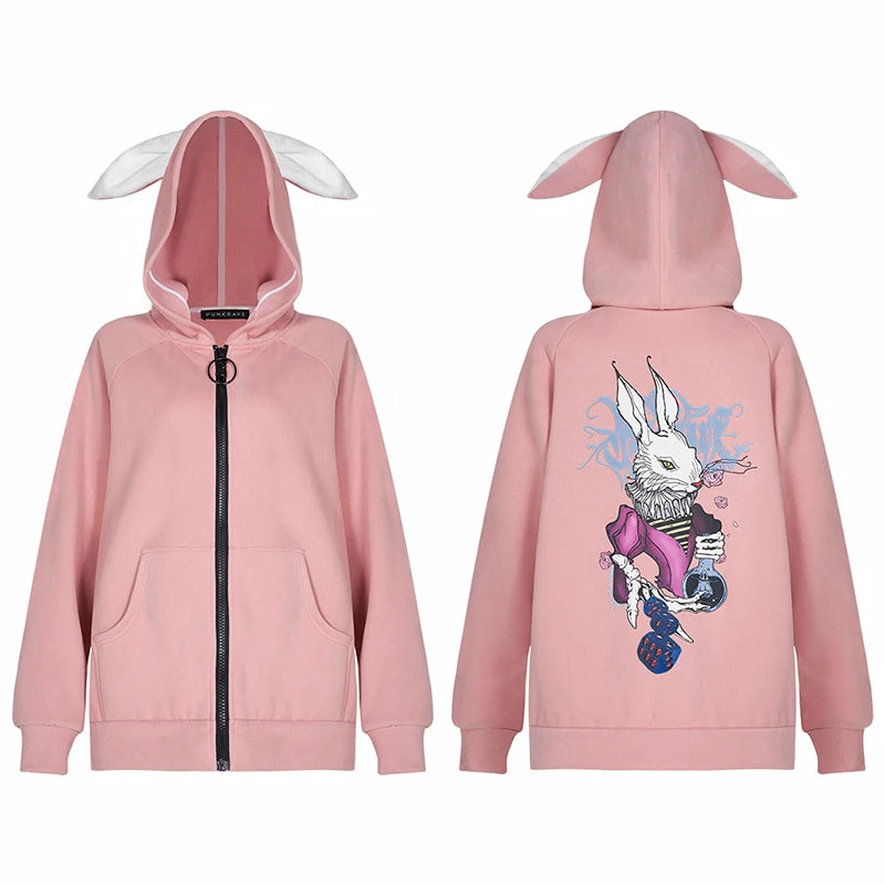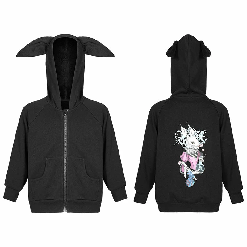 4. Front centre plastic zipper and cute ring rabbit pendant, increase the sense of detail