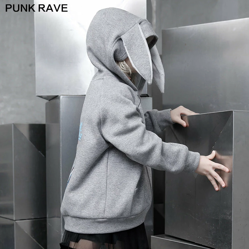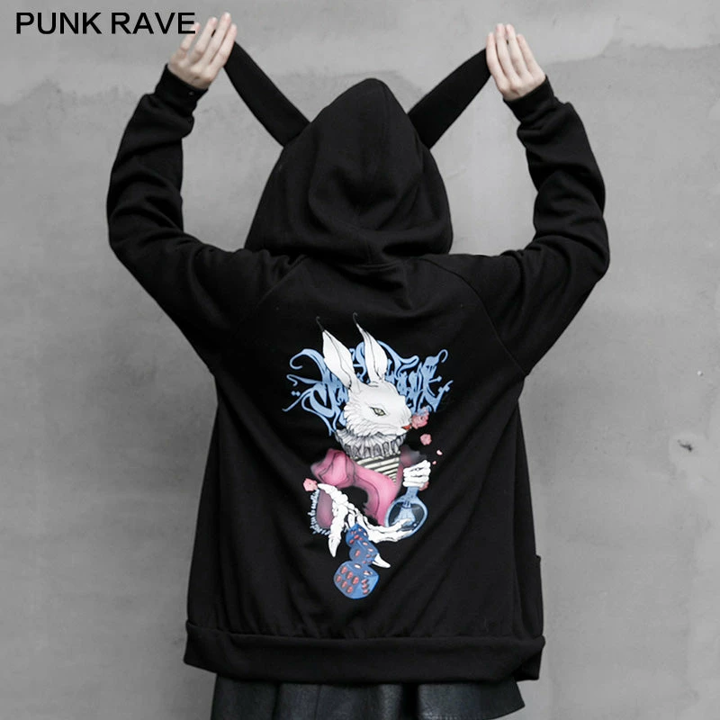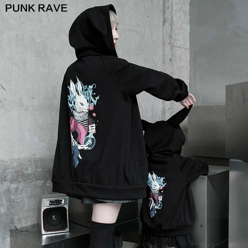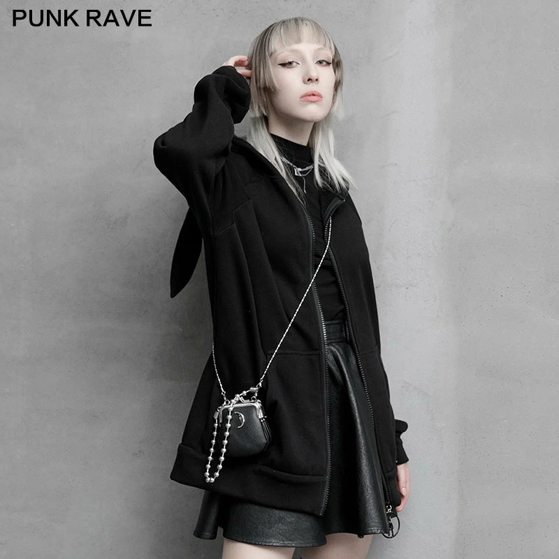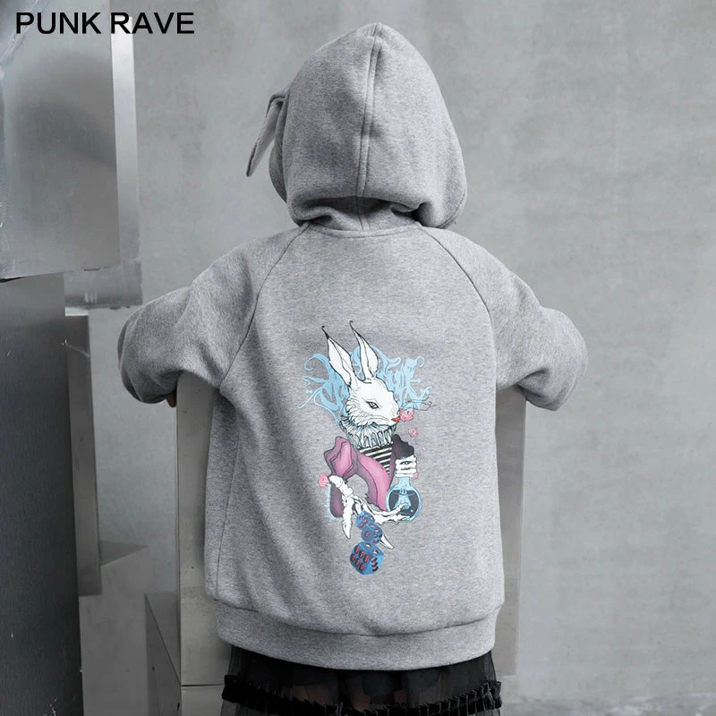 4. Front centre plastic zipper and cute ring rabbit pendant, increase the sense of detail