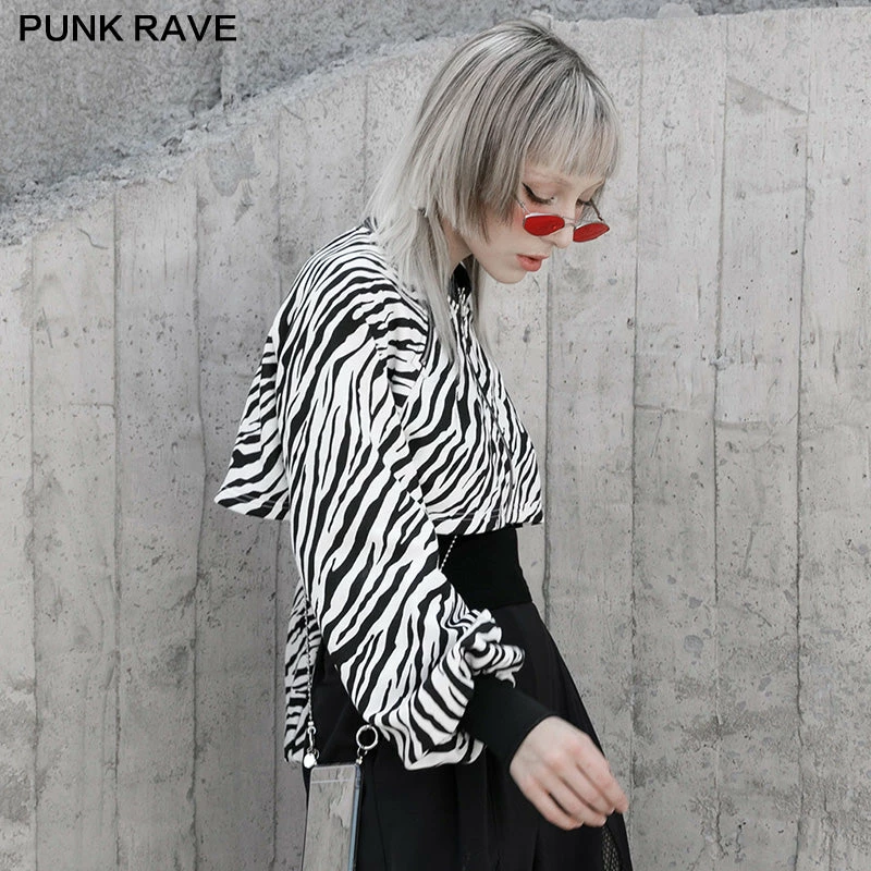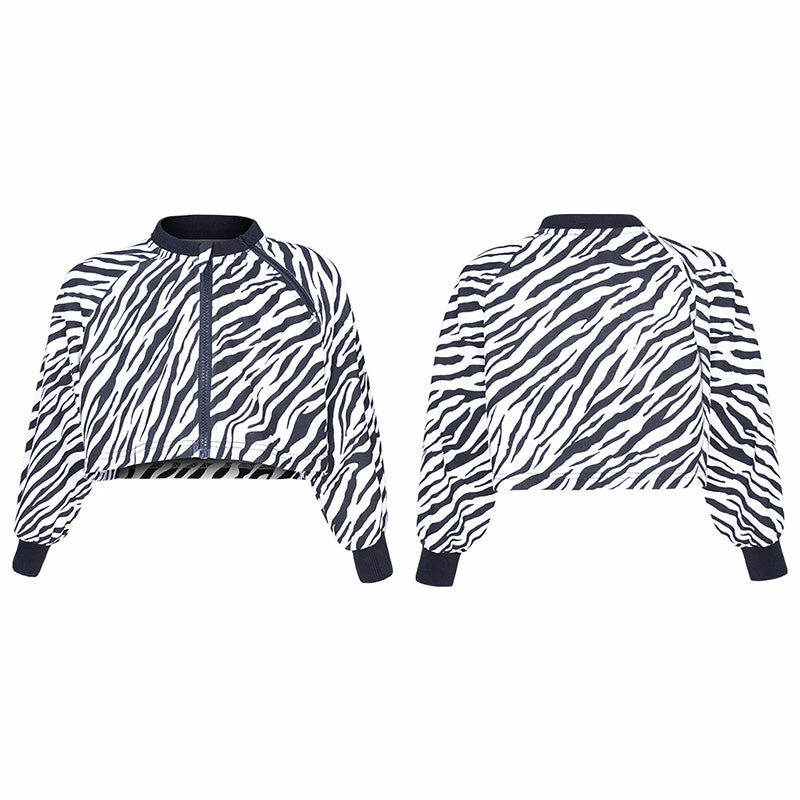 Design selling points: 1.short & loose version,makes you look slimmer 2. Plastic teeth zipper in center front, you can wear it as coat or hoodie as you like 3. Zipper head has the triangle block slice design, considerate protection, 4. Personalized tooth zipper decoration at side.Fabric selling point: 1. Fashion zebra-stripe pattern, which is leading the trend.