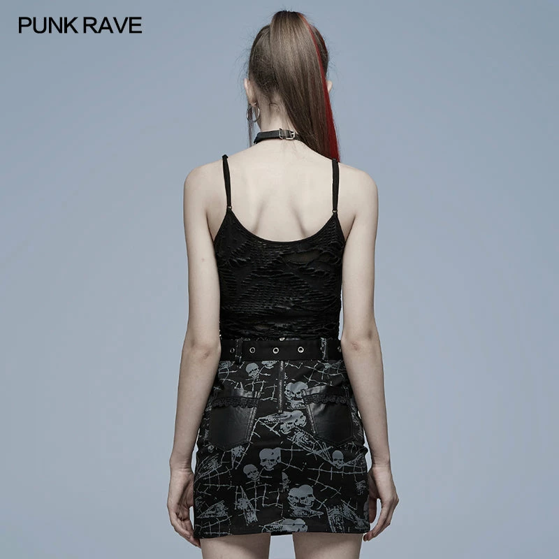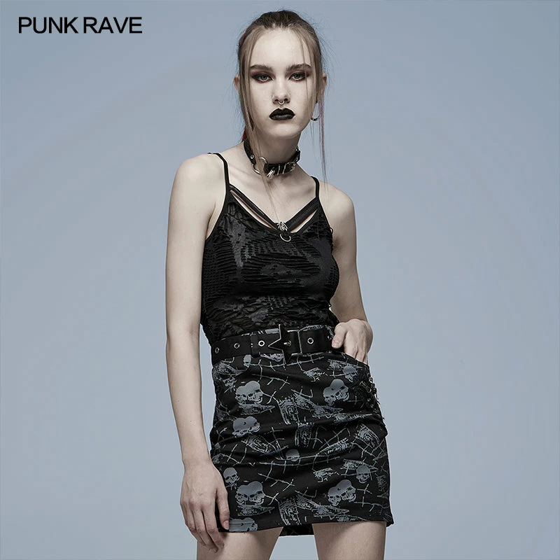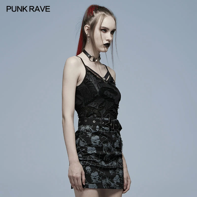 - The front chest is decorated with elastic bands and skull, which make it more sexy.