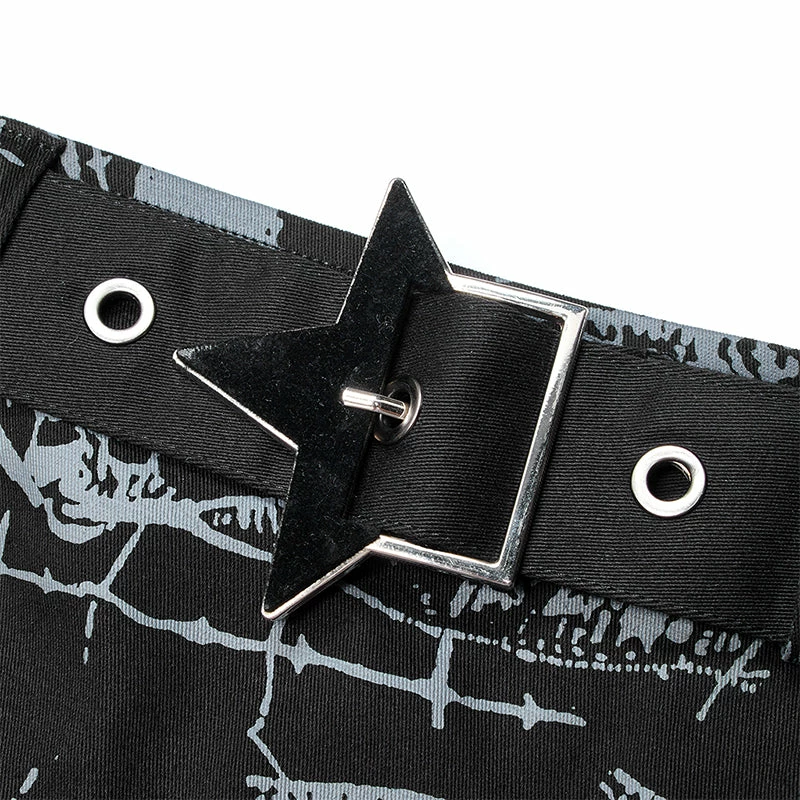 - Removable waist belt, distinctive Gothic waist buckle and pocket hardware decoration.