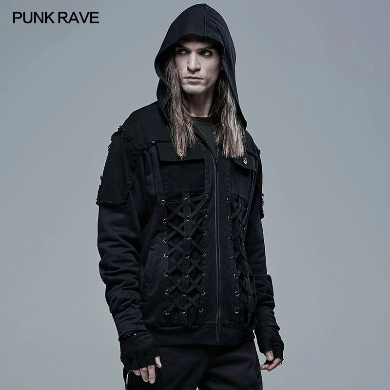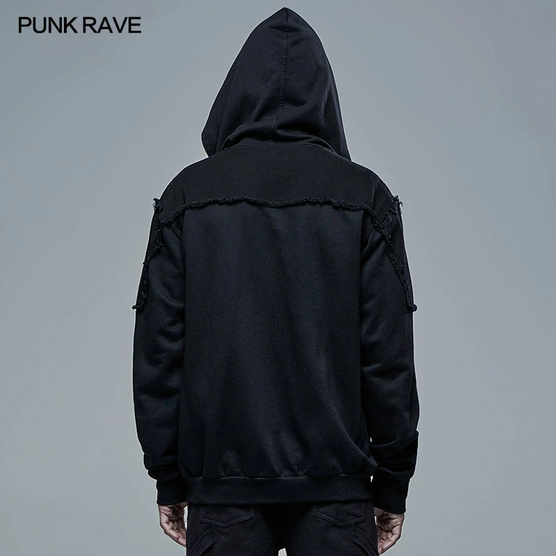 Punk Rave Store Womens & Mens Double Layers Irregular Dark Gothic Shirt With Black Hole Hooded
