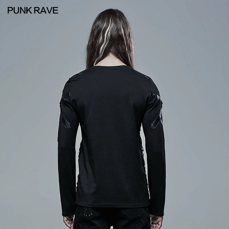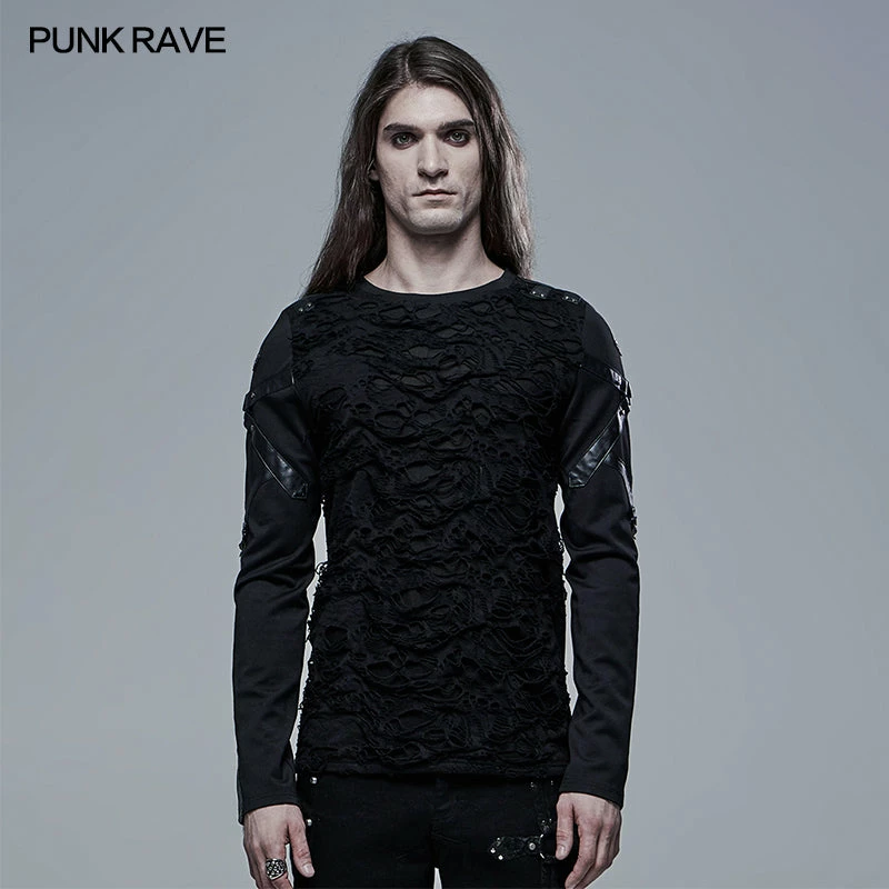 Punk Rave Store Womens & Mens Double Layers Irregular Dark Gothic Shirt With Black Hole Hooded