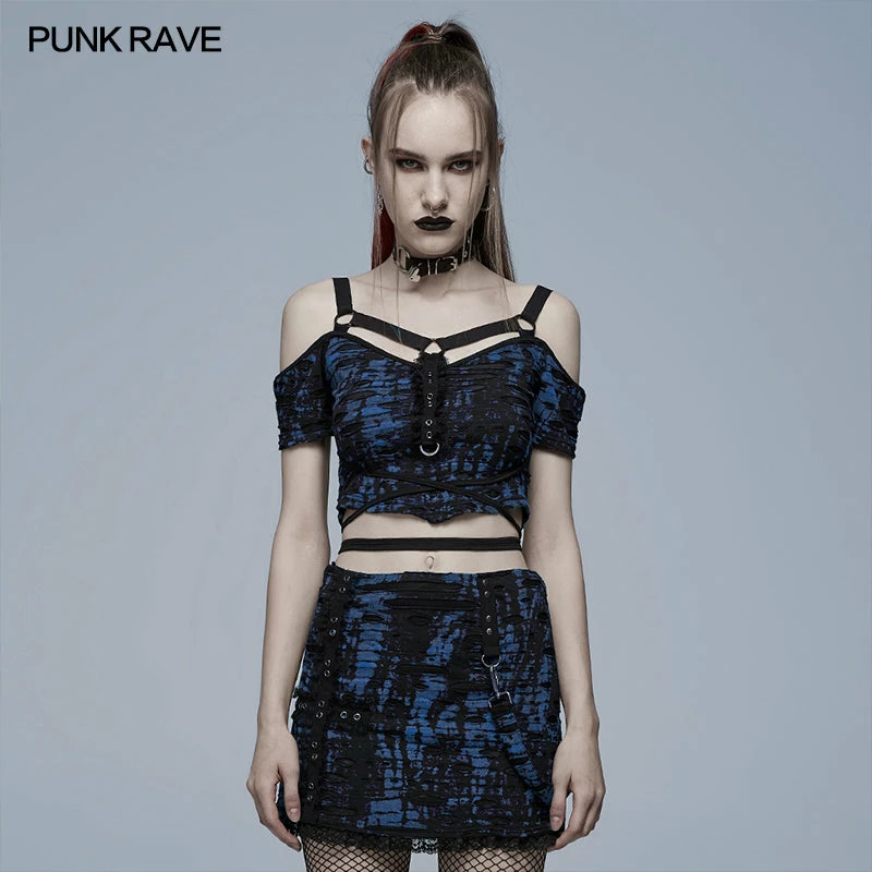 Punk Rave Store Womens & Mens Double Layers Irregular Dark Gothic Shirt With Black Hole Hooded