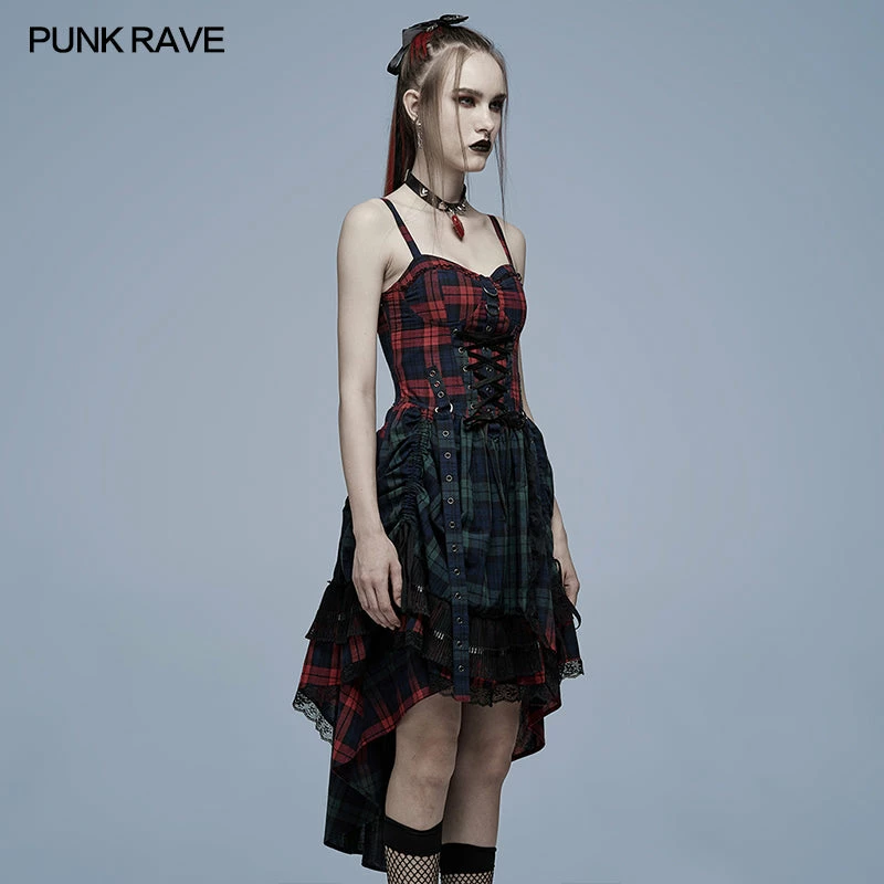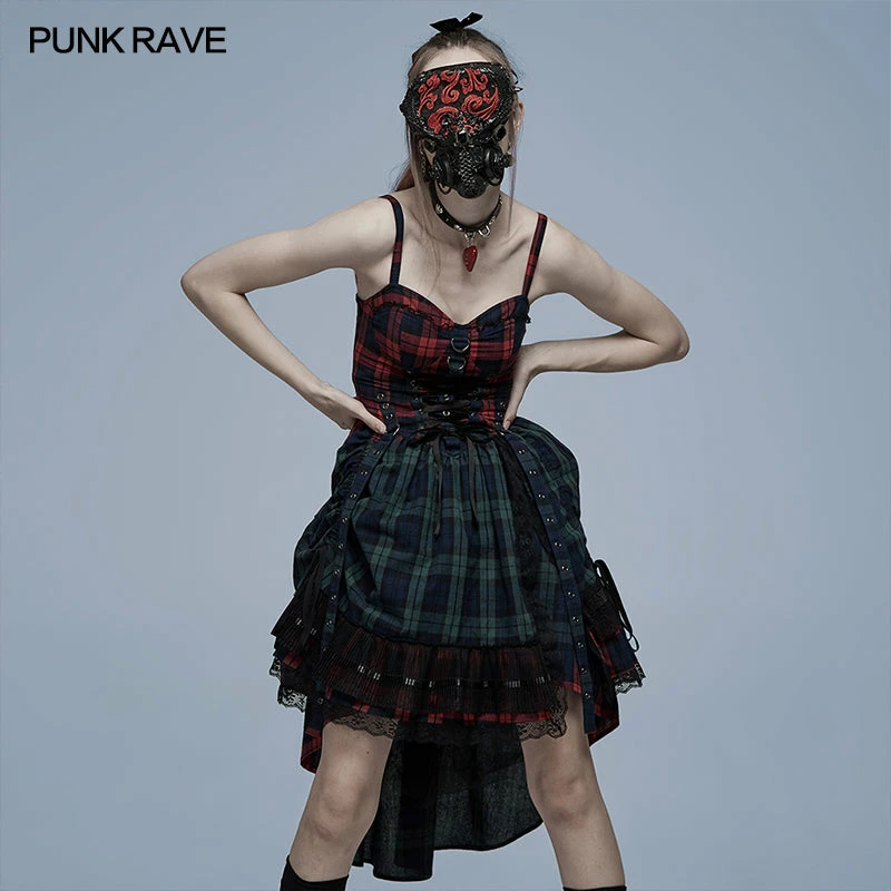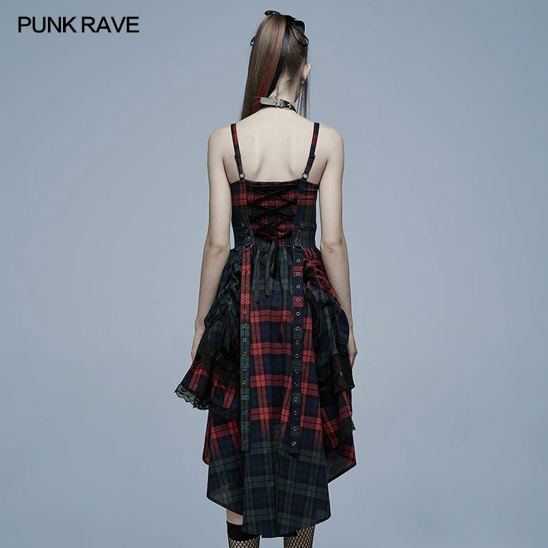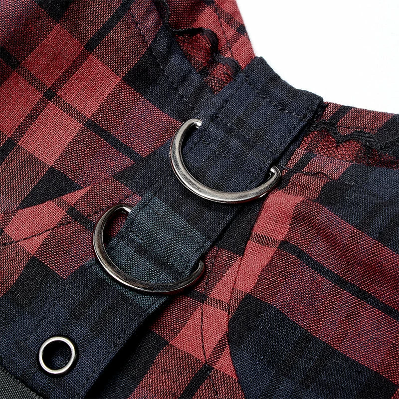 - It is made of cotton plaid fabric. The unique red and blue gradient plaid makes the whole dress more distinct.