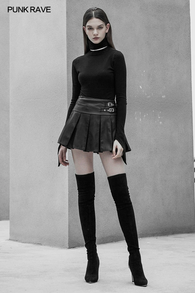 Punk Rave Store Soft Lace Imitate Silk Wrinkled Stitching Off Shoulder Tops Gothic T-shirt For Women