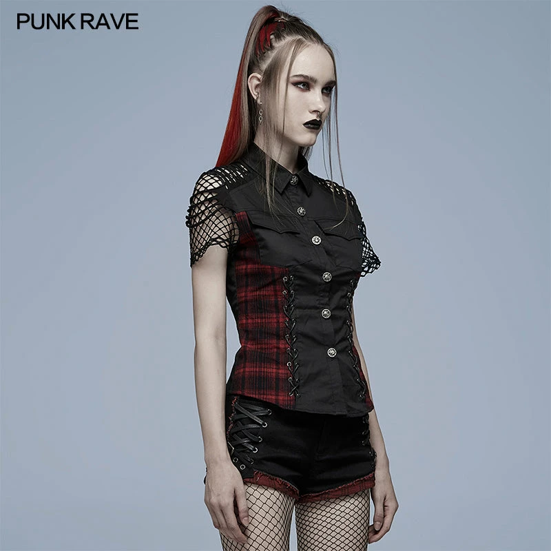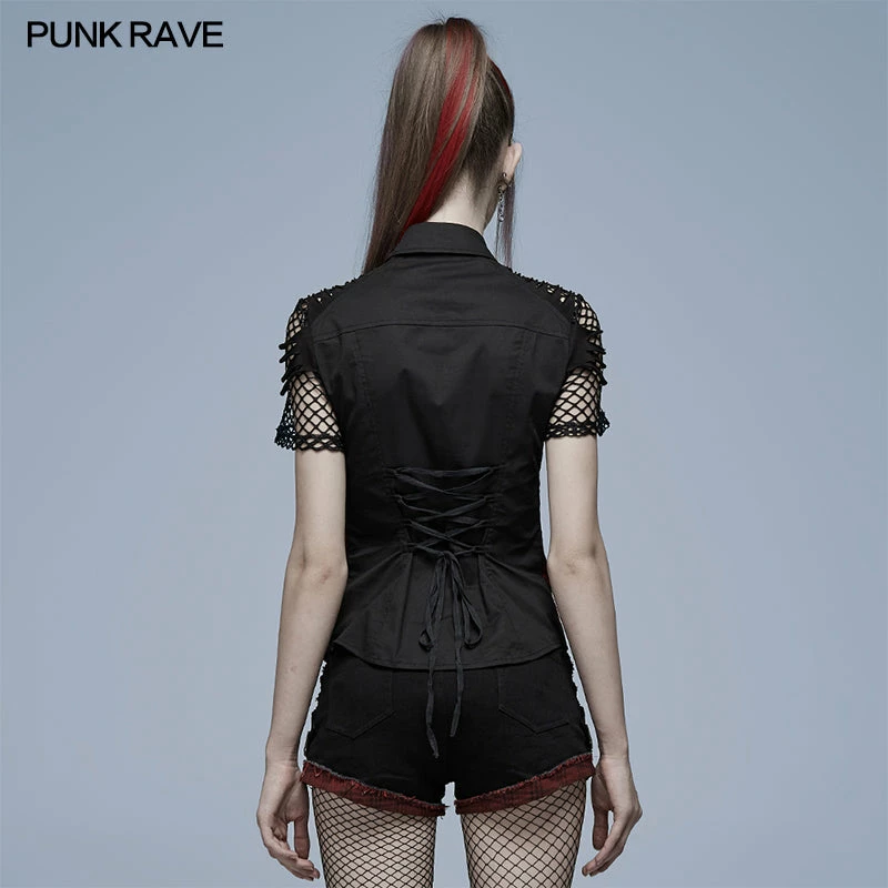 Punkravestore Gothic Spider Web Printting Perspective T-shirt