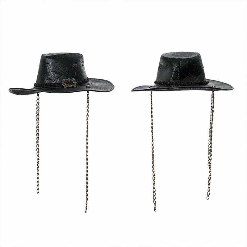 Personality carved pu material cowboy hat combined with chain decoration ,more casual