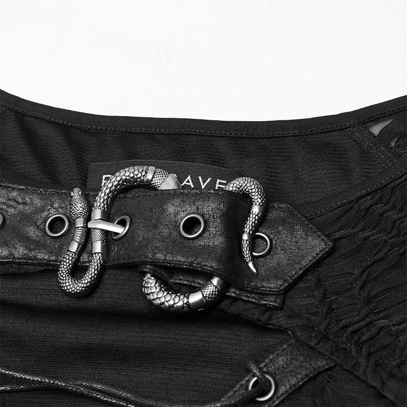 - The cut-out design of the chest and the metal snake buckle make the style sexy and playful.