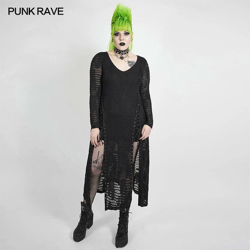 Punk Rave Store Womens & Mens Double Layers Irregular Dark Gothic Shirt With Black Hole Hooded