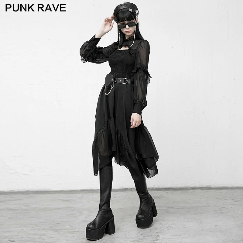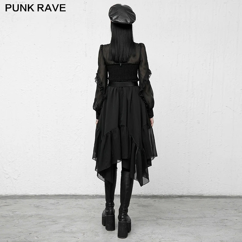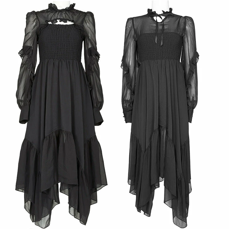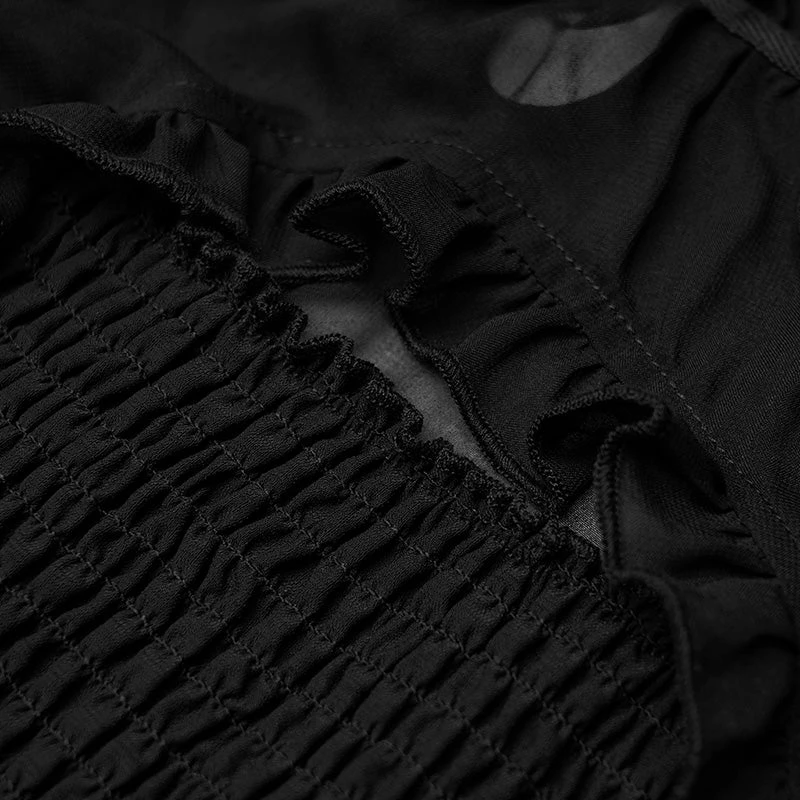 2. Black model for stitching, the half upper body is sexy light chiffon, smocking and hem parts use thick chiffon to keep a sense of flow